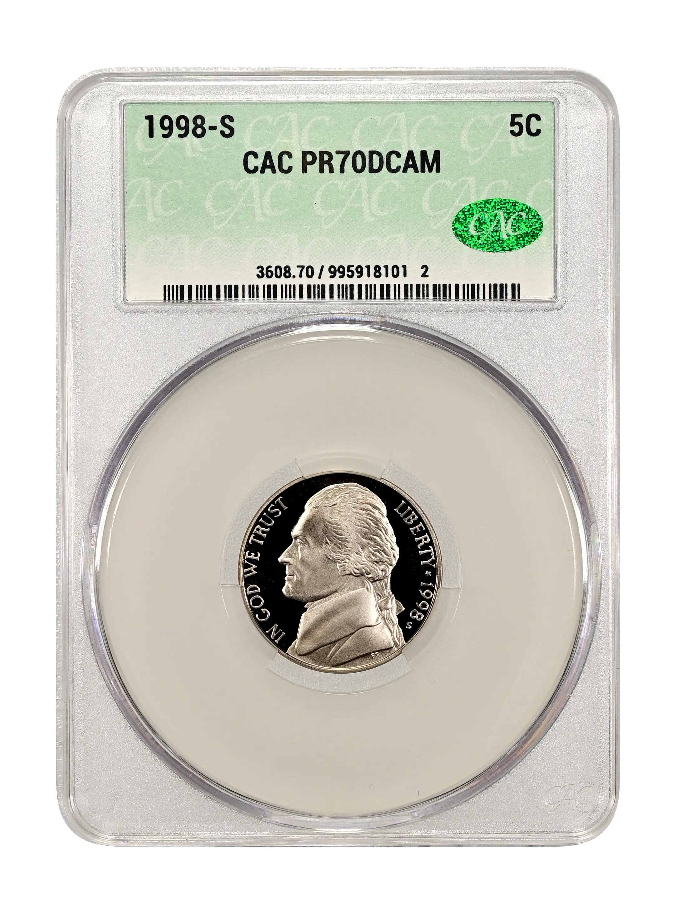 1998-S 5c DCAM (Proof) CAC PR70DCAM