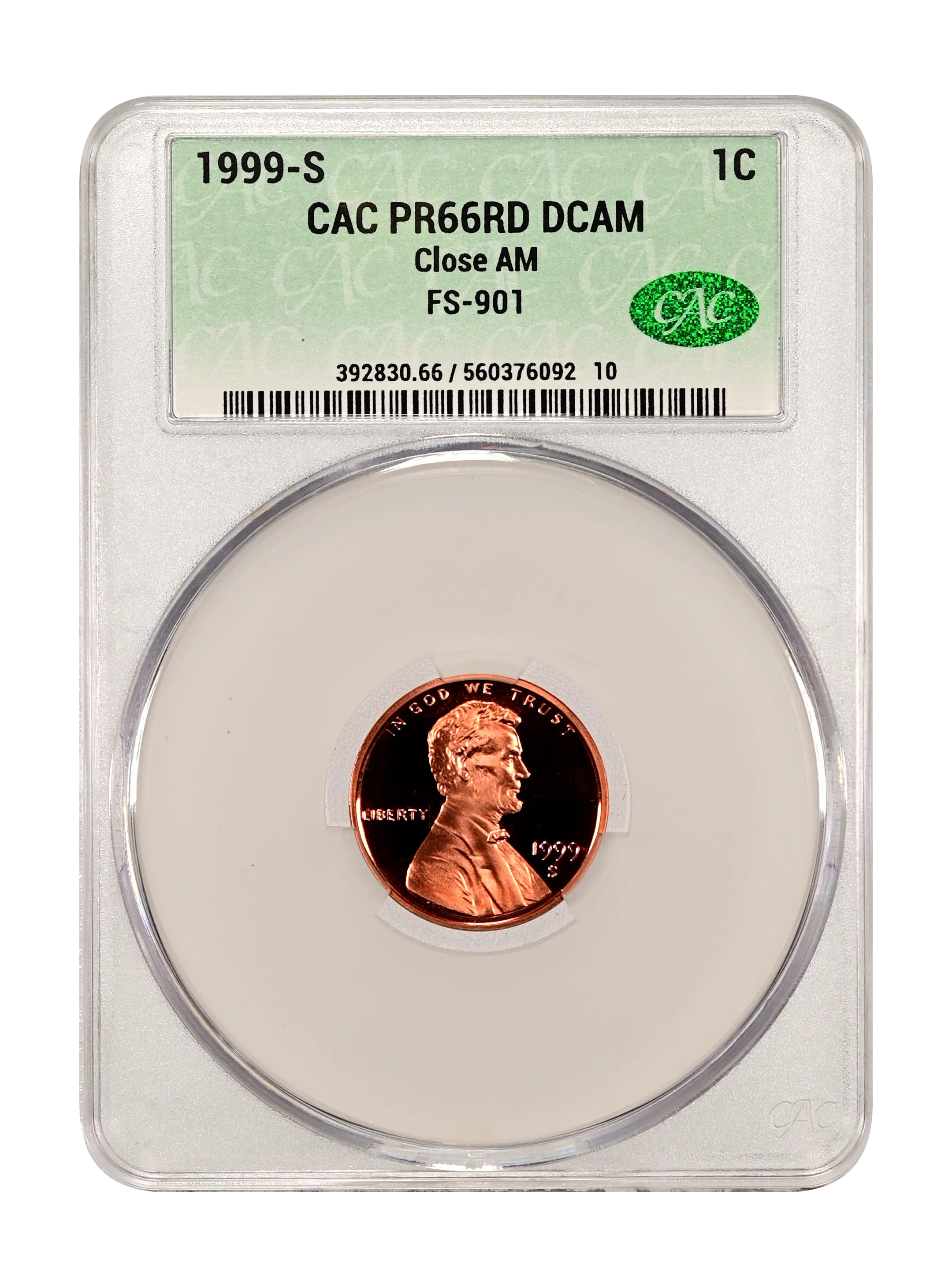 1999-S Close AM 1c FS-901 RD DCAM (Proof) CAC PR66RD DCAM
