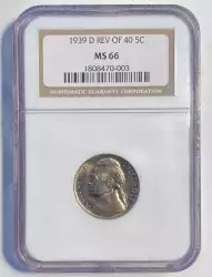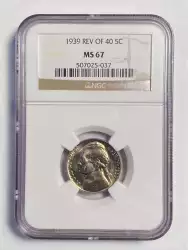 Reverse: The Jefferson home is prominently centered with the name MONTICELLO captioned below. The denomination FIVE CENTS is spelled out in half circle underneath and the words E PLURIBUS UNUM and UNITED STATES OF AMERICA appear at the top and bottom periphery.