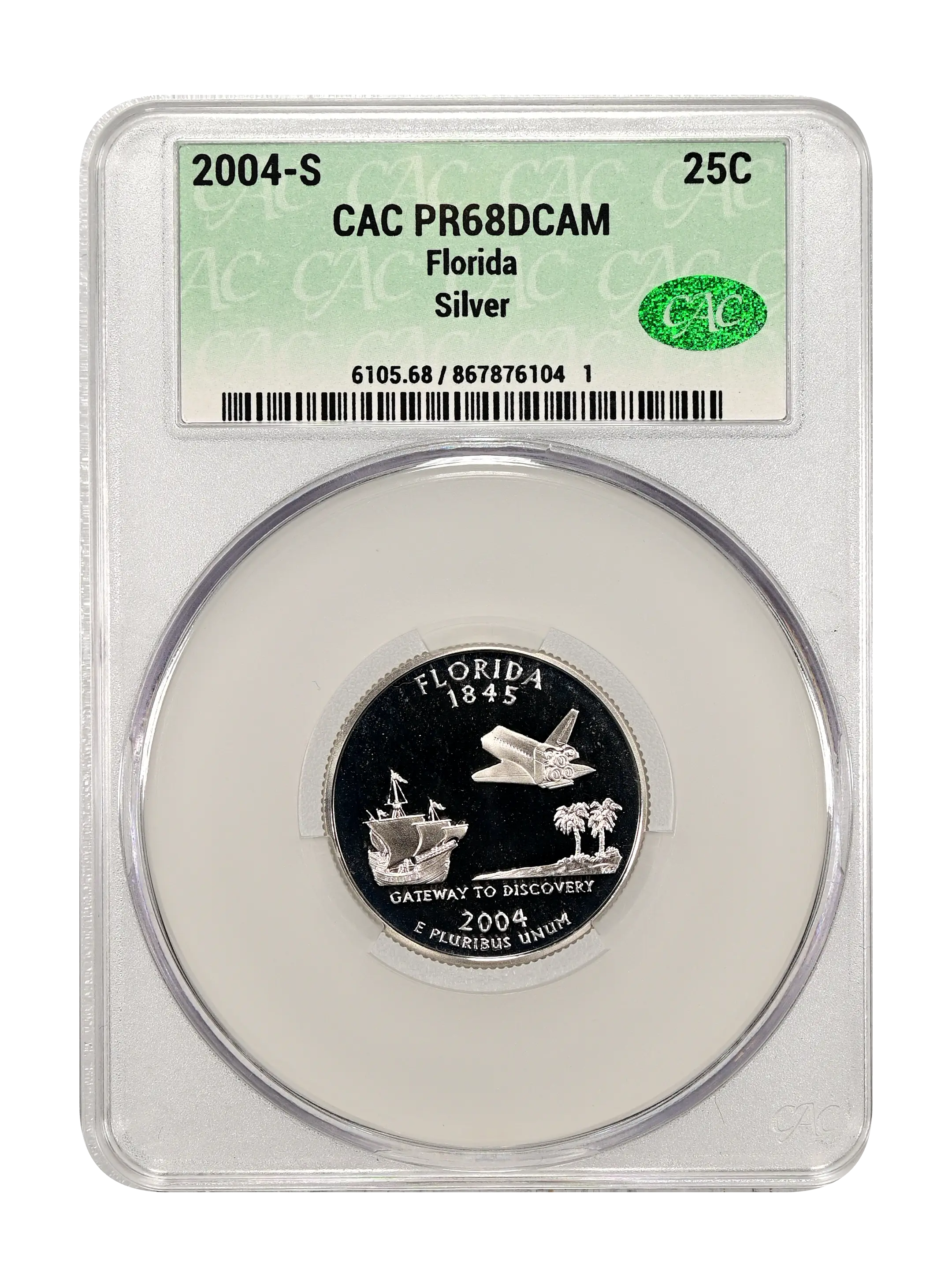2004-S Florida 25c Silver DCAM (Proof) CAC PR68DCAM