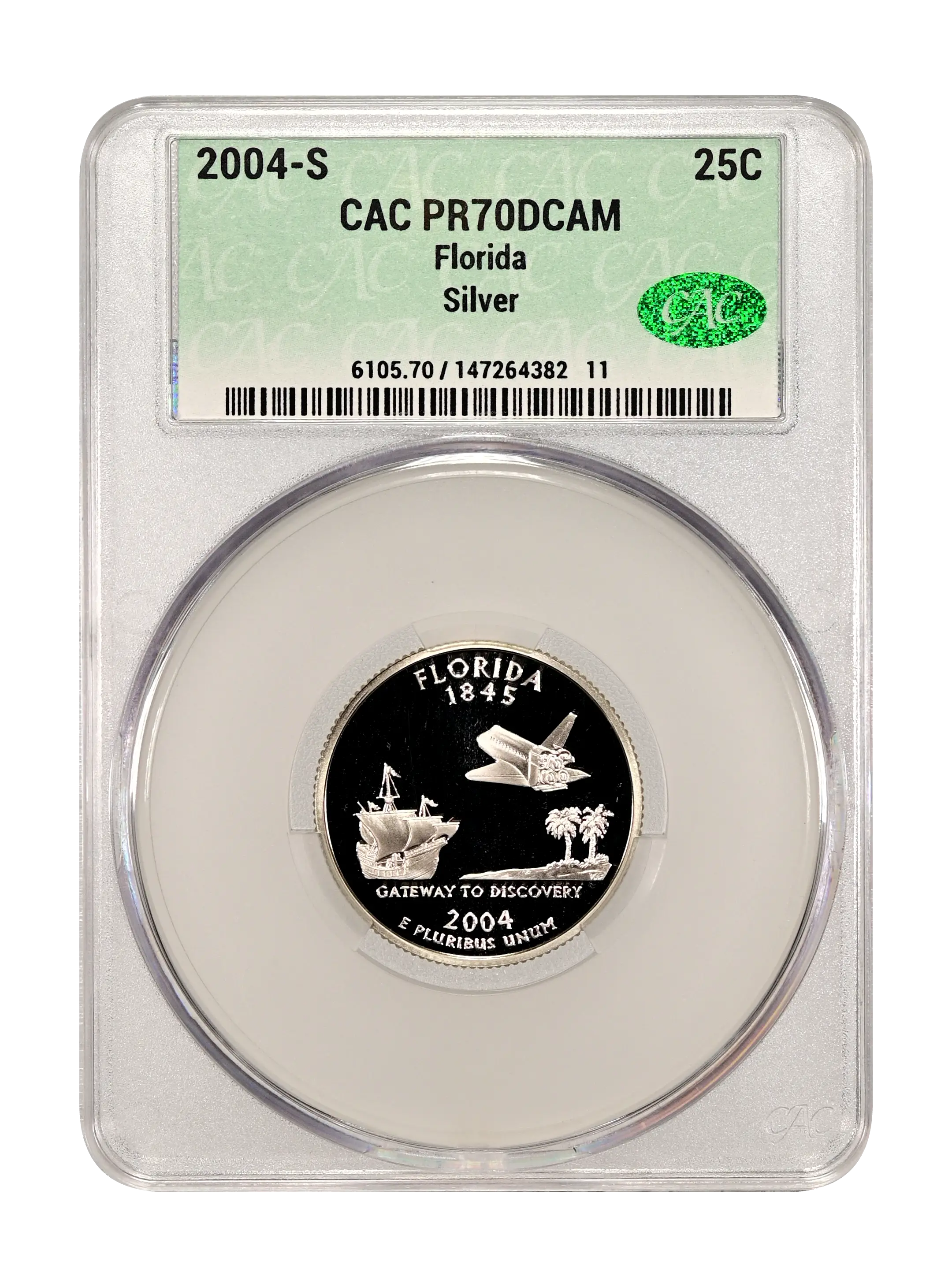 2004-S Florida 25c Silver DCAM (Proof) CAC PR70DCAM