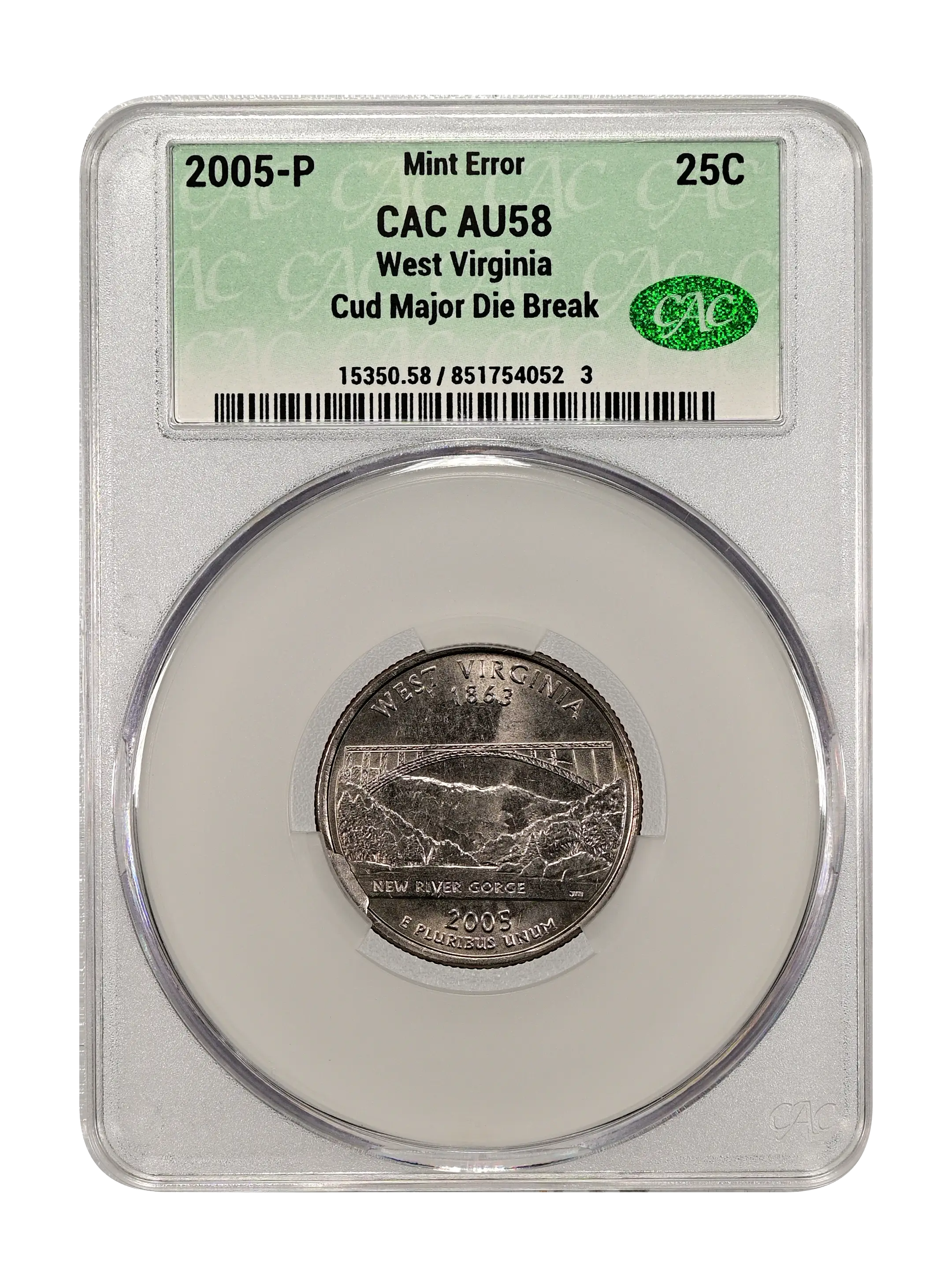 2005-P 25C West Virginia Statehood Quarter -- Reverse Die Break at 8 O'Clock -- MS66 NGC....