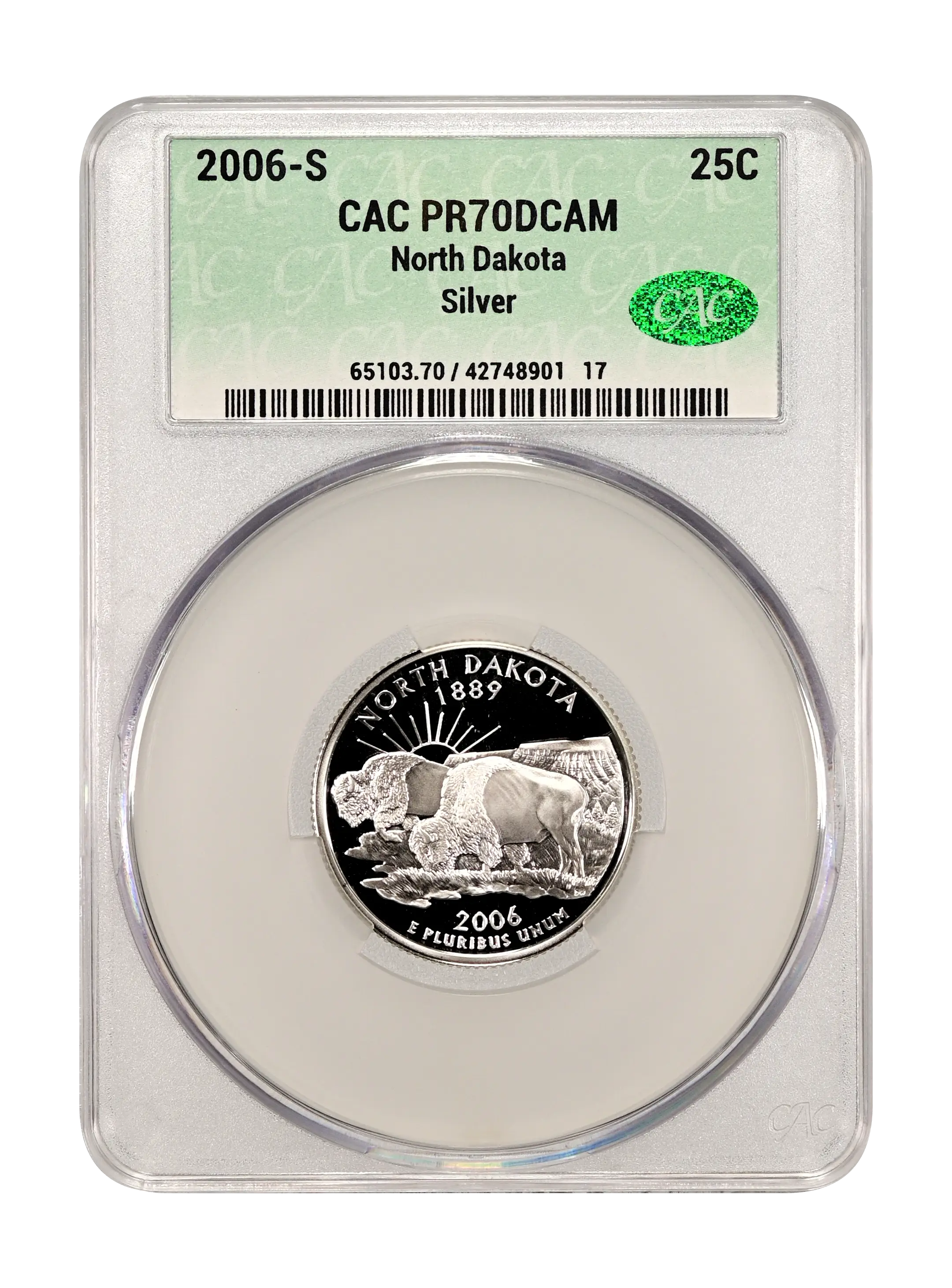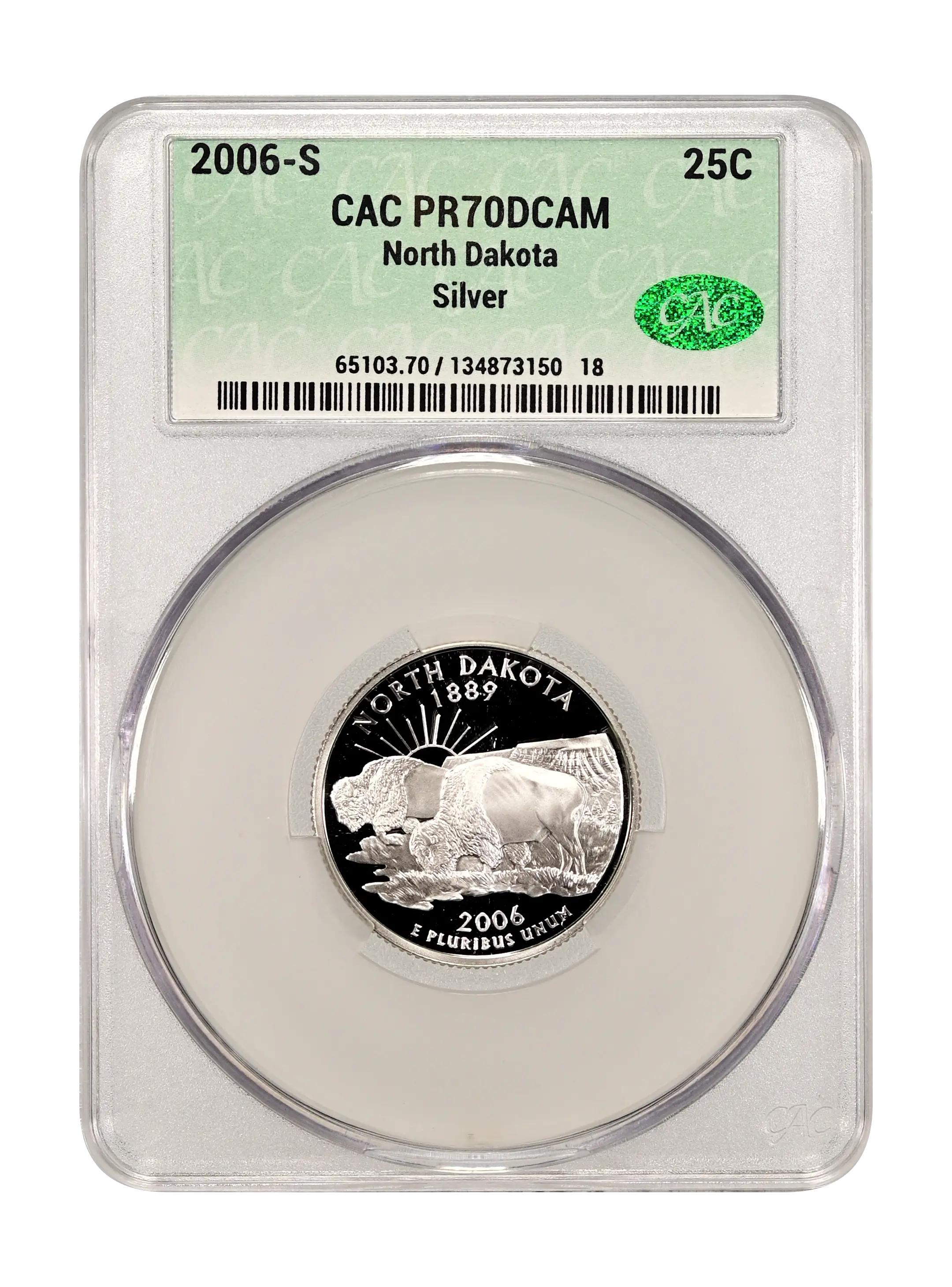 2006-S North Dakota 25c Silver DCAM (Proof) CAC PR70DCAM