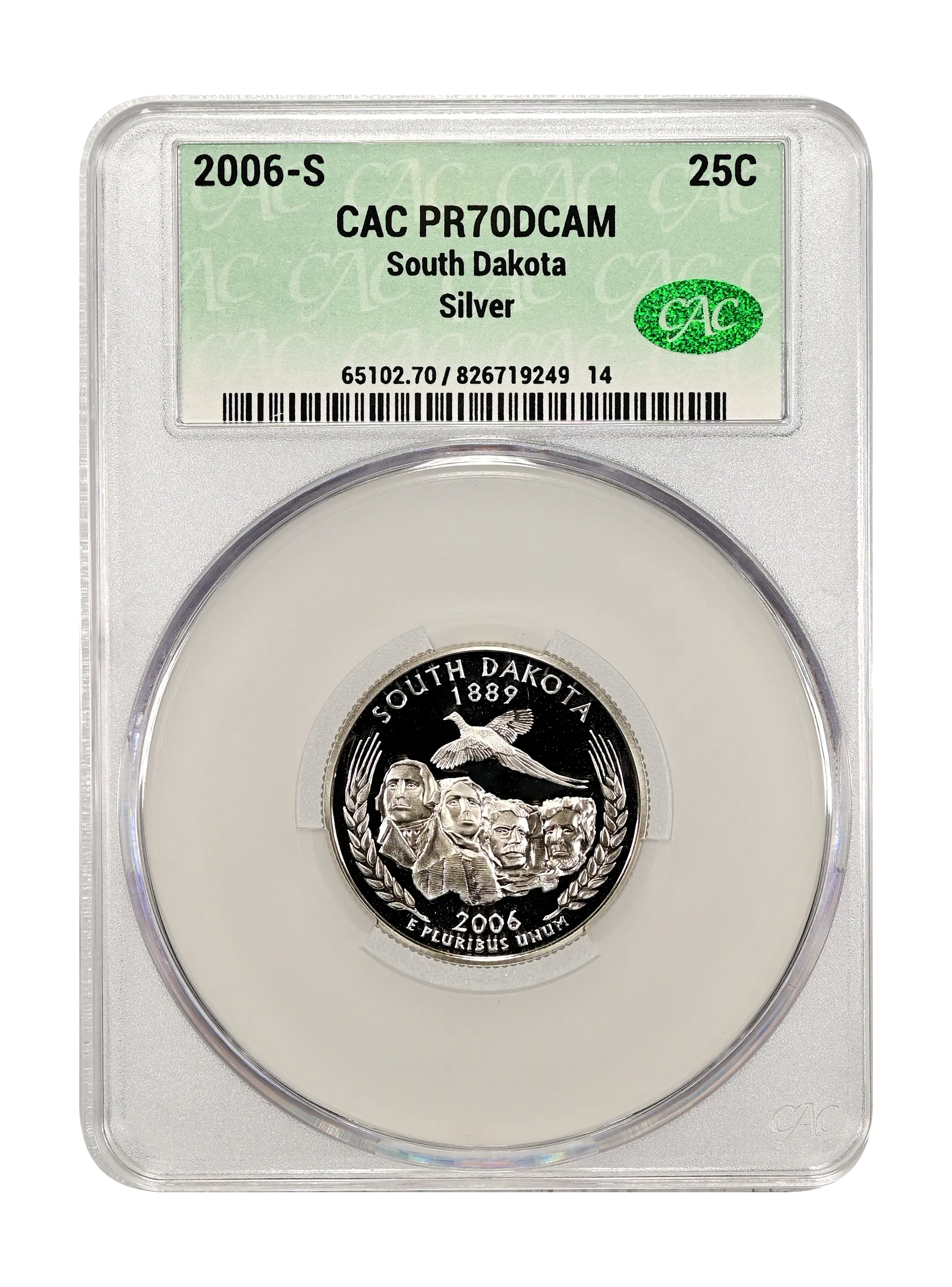 2006-S South Dakota 25c Silver DCAM (Proof) CAC PR70DCAM