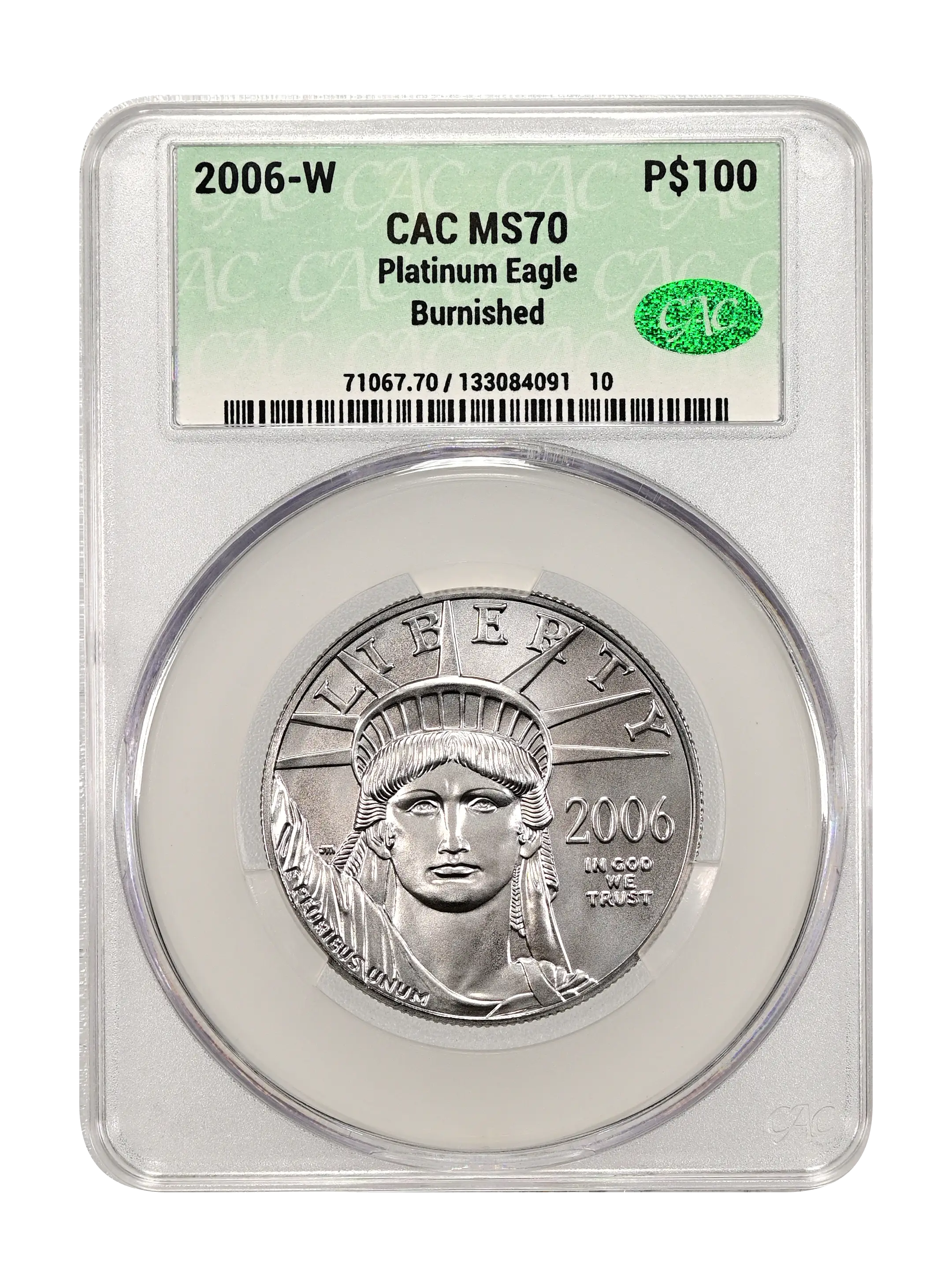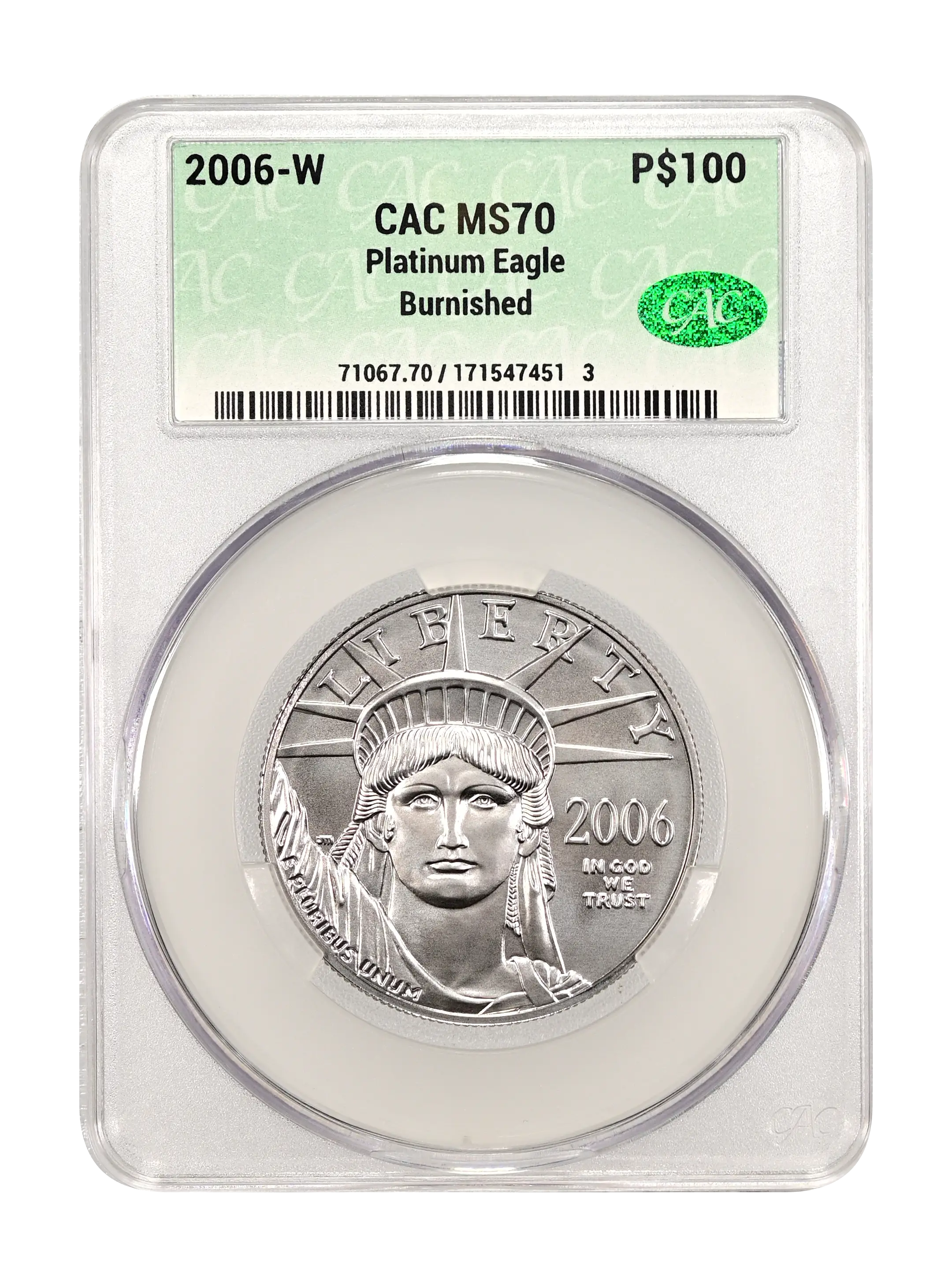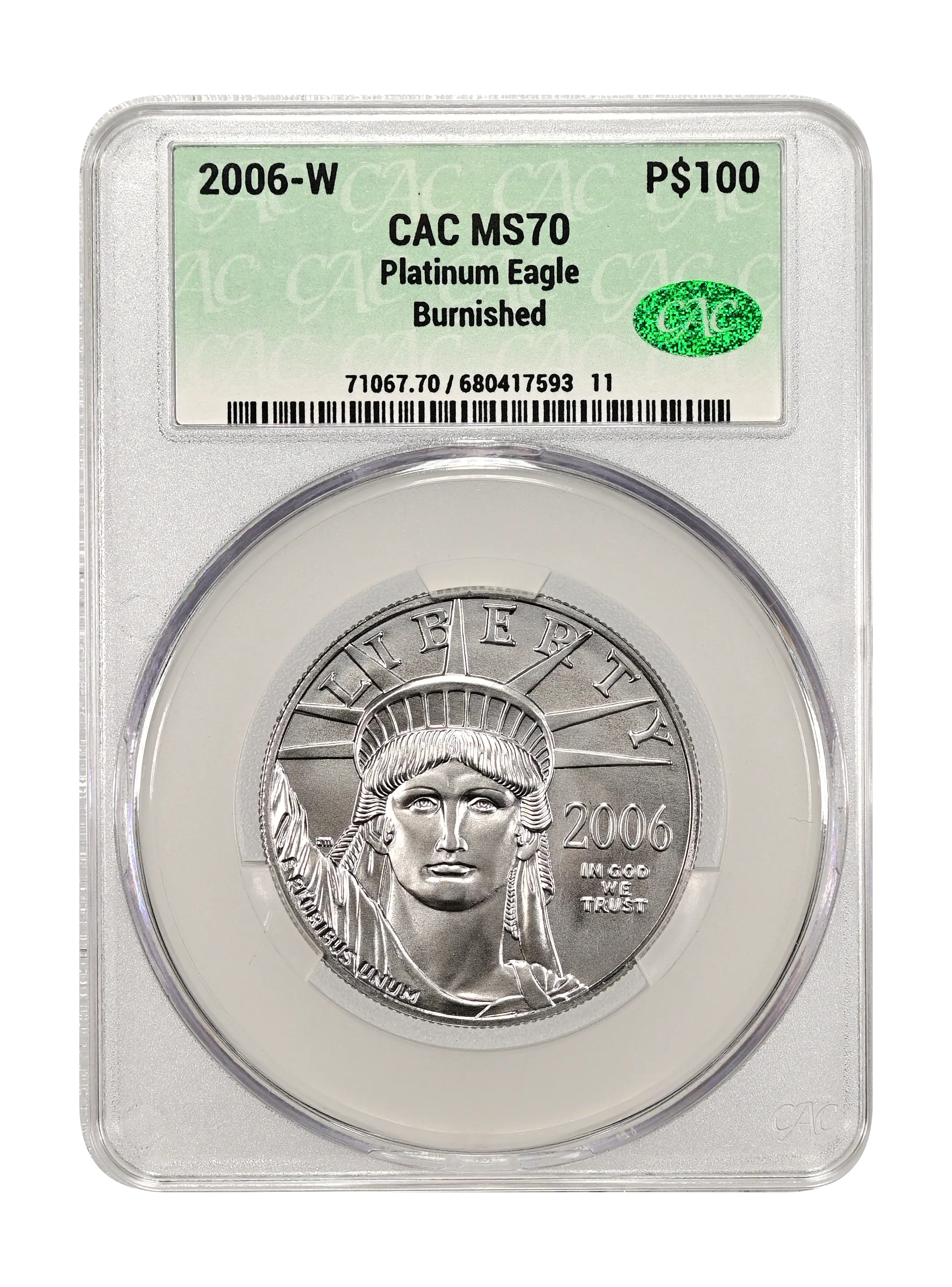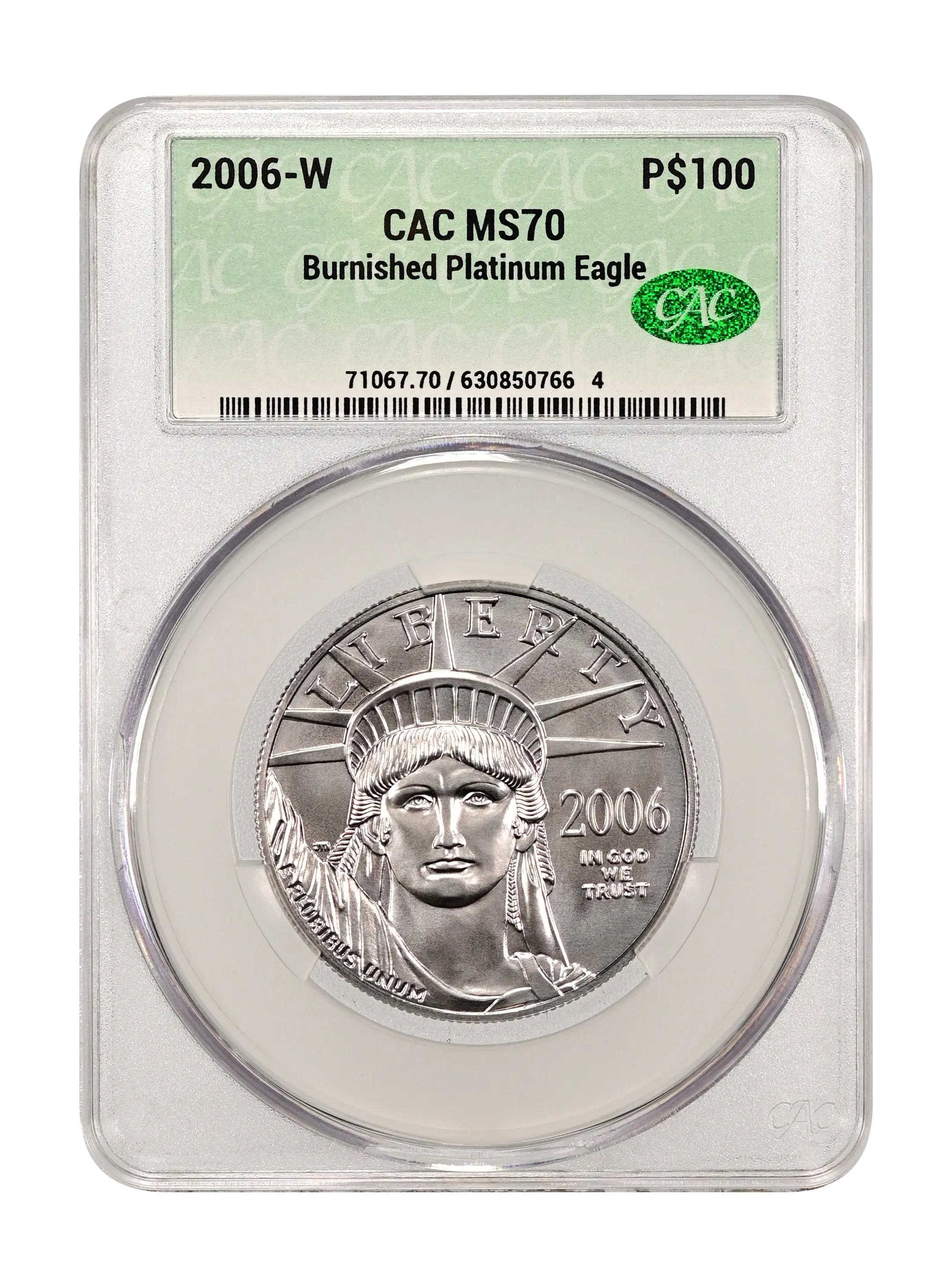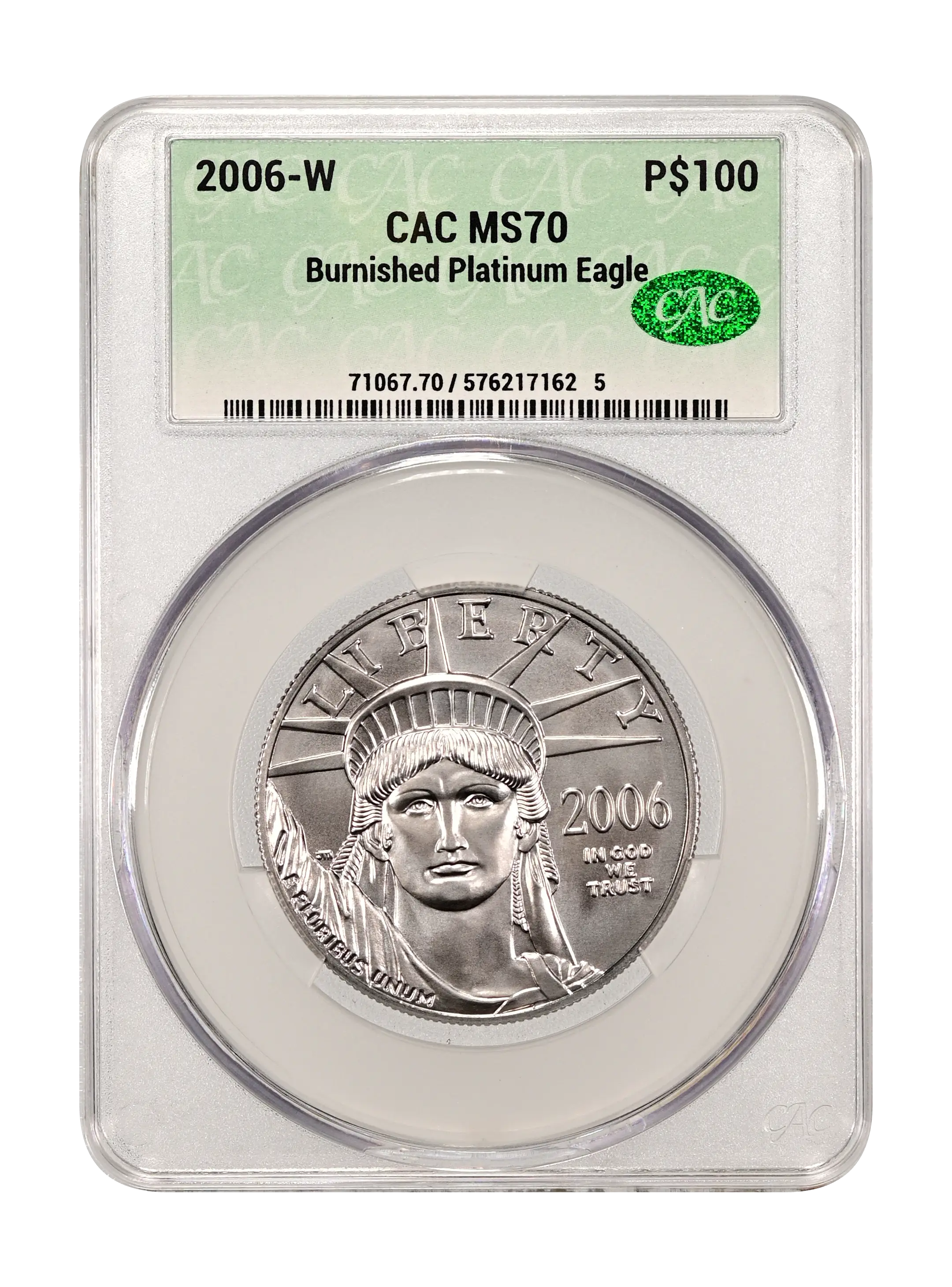 2006-W Burnished Platinum Eagle P$100 CAC MS70