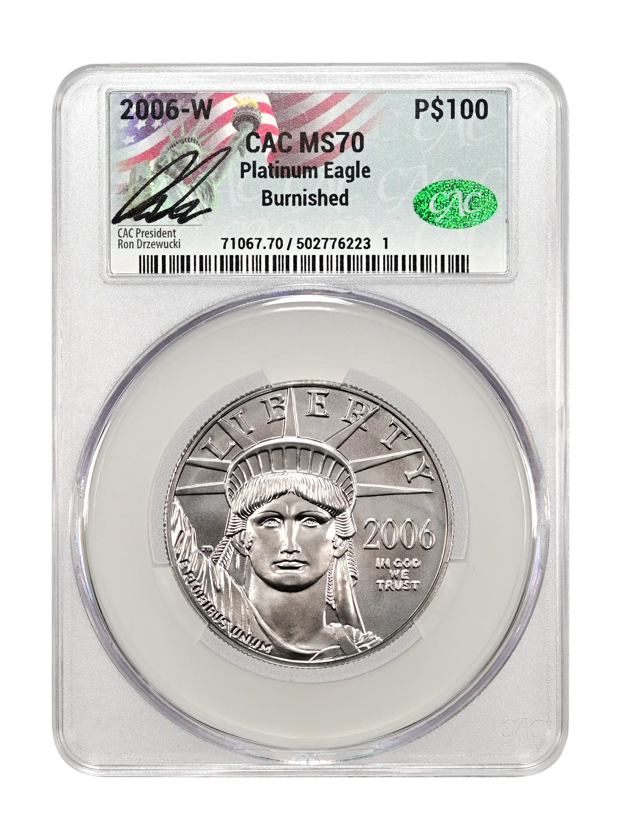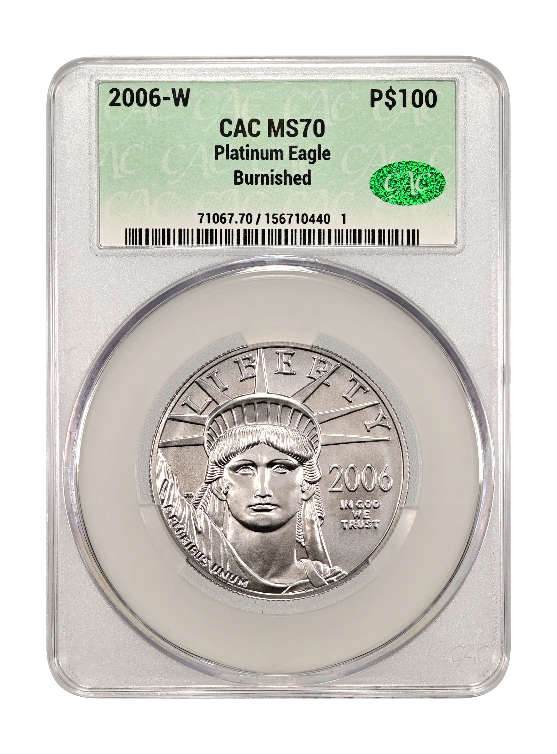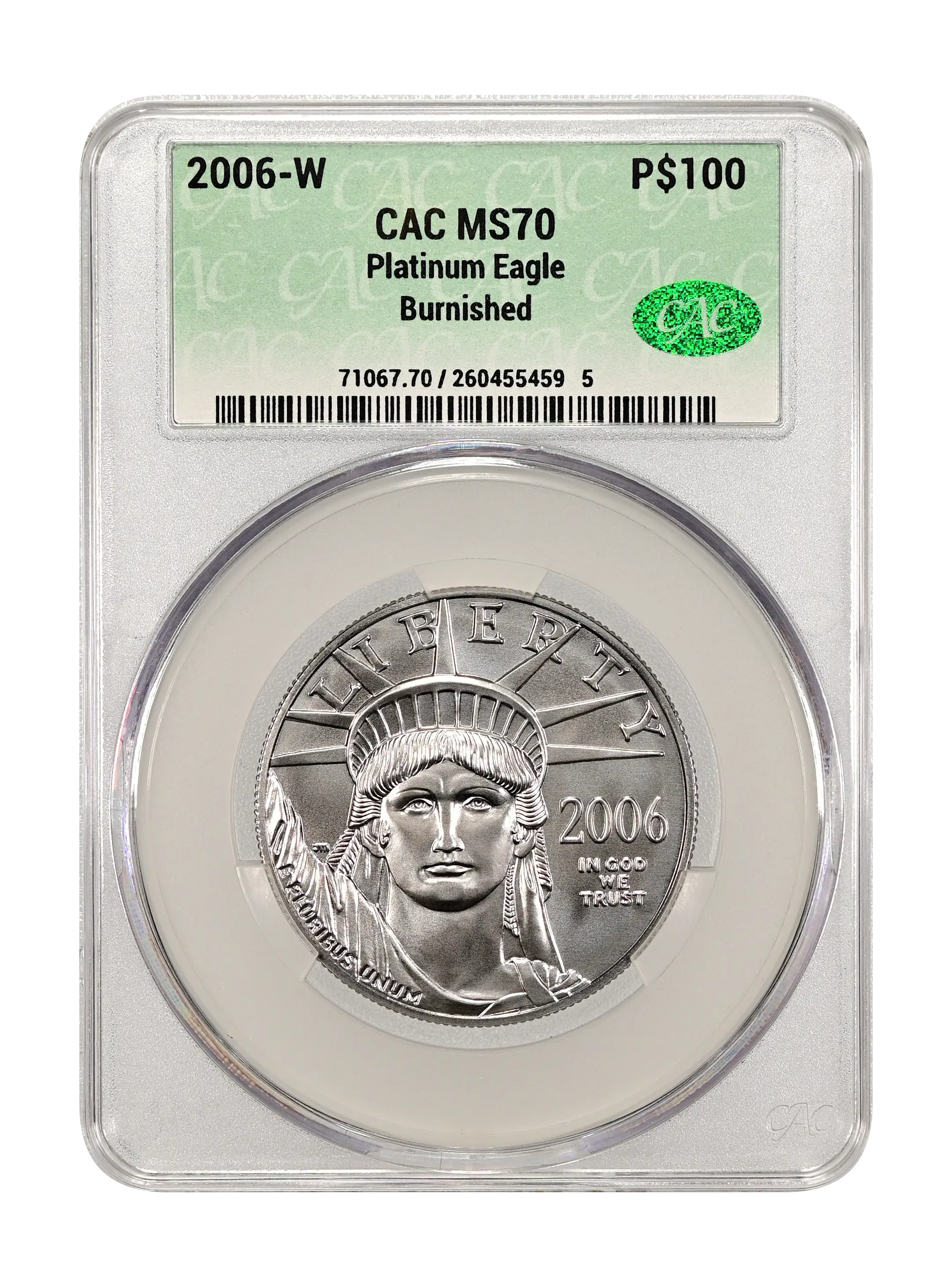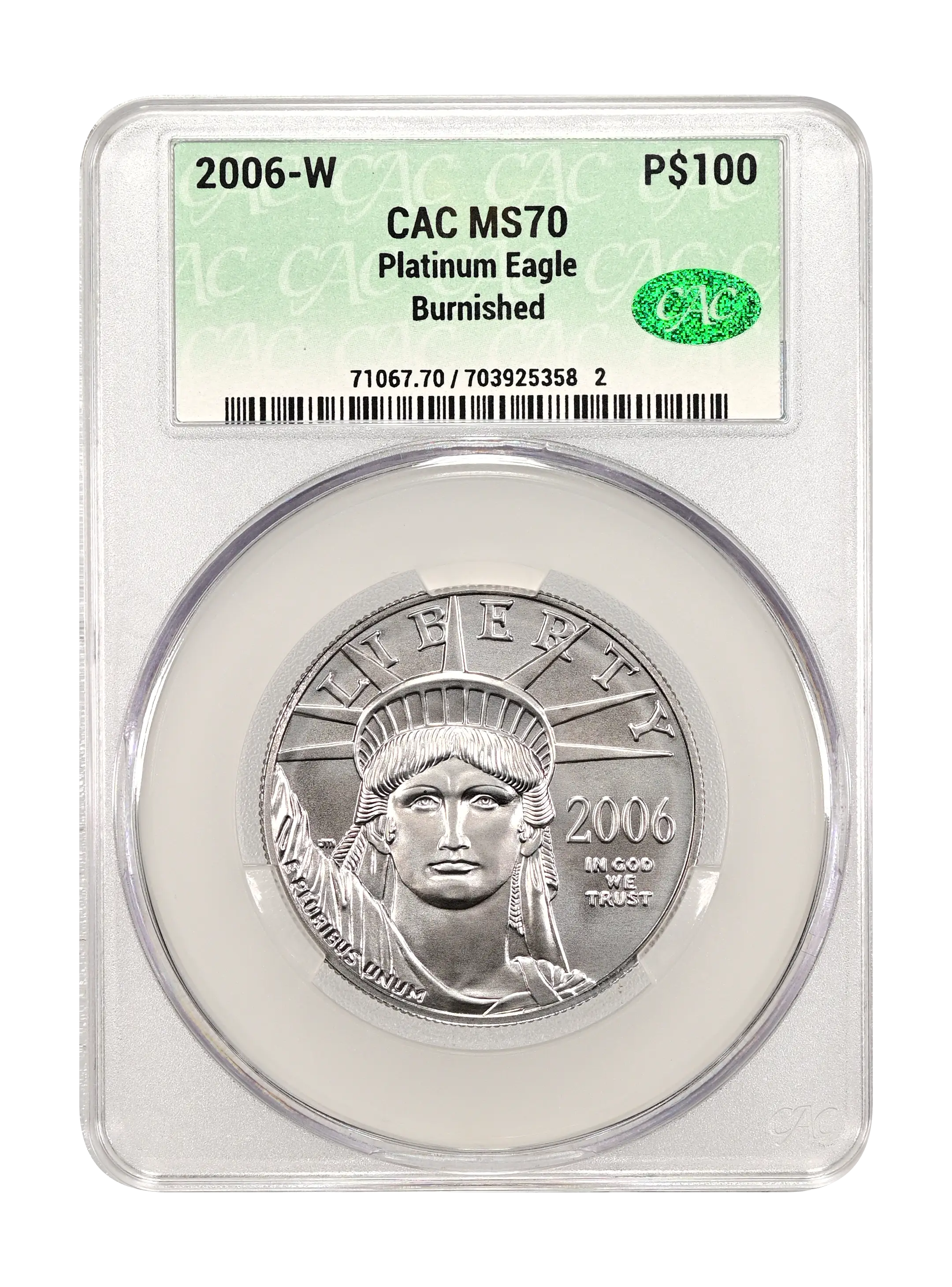 2006-W Burnished Platinum Eagle P$100 CAC MS70