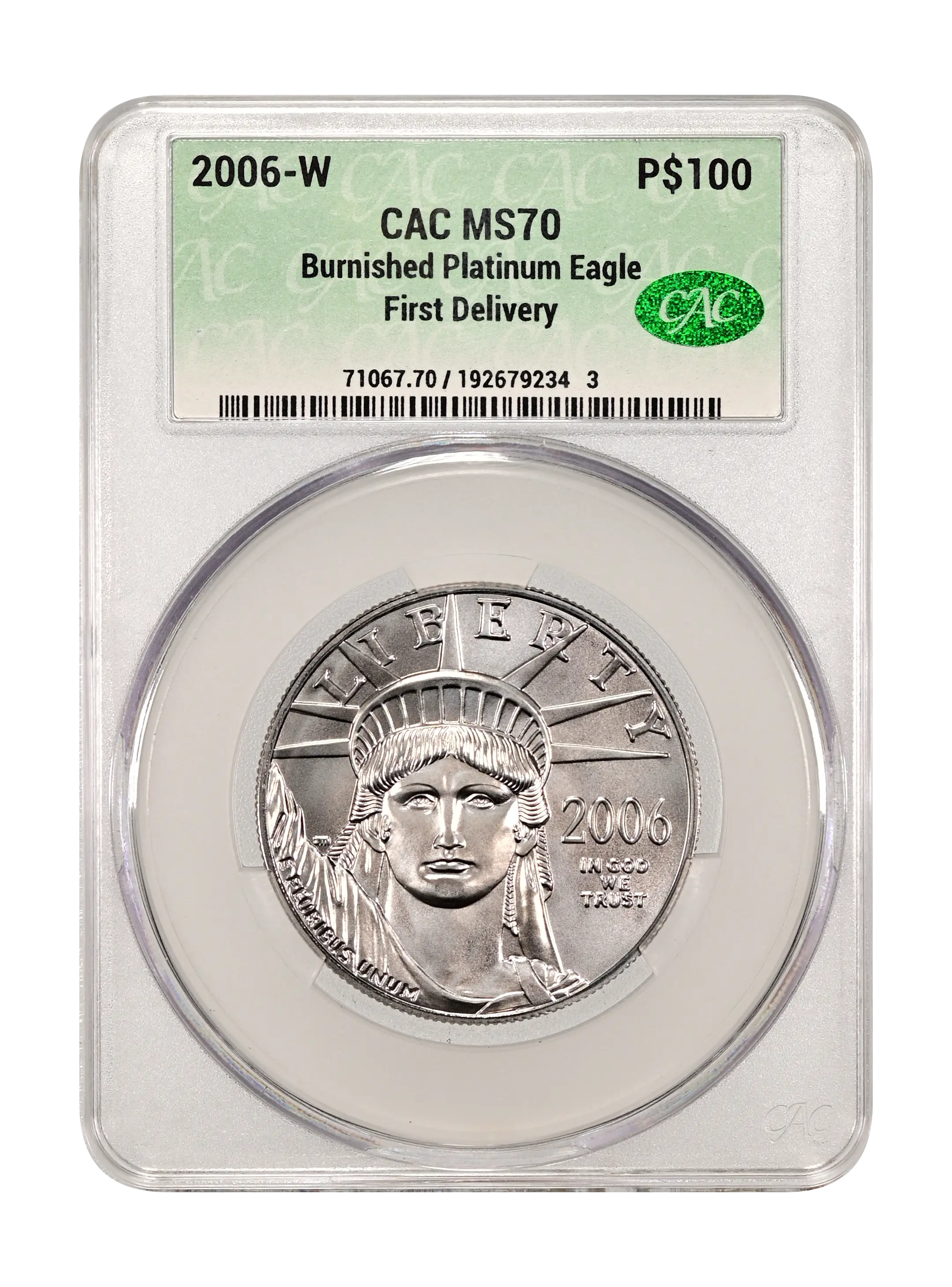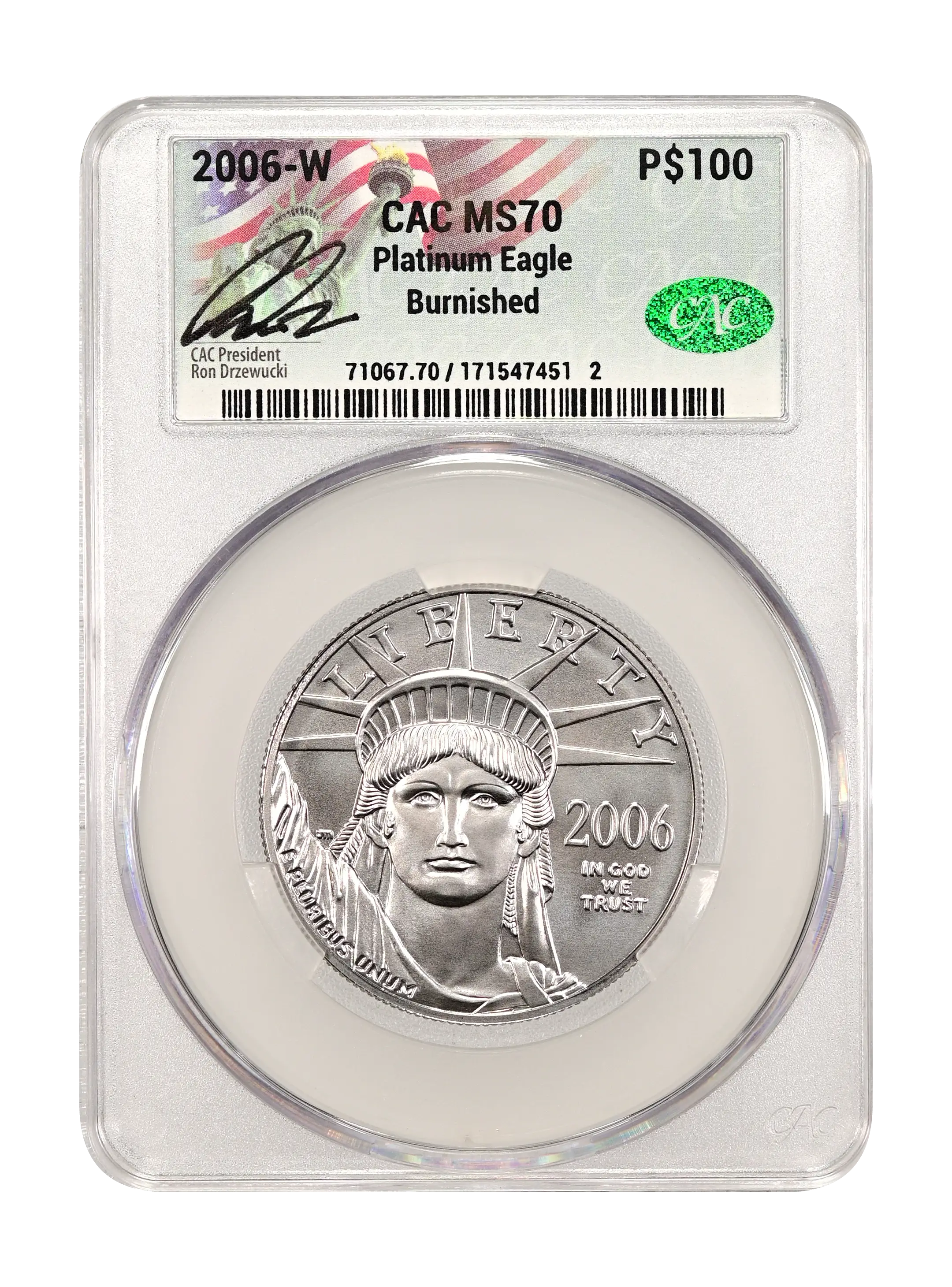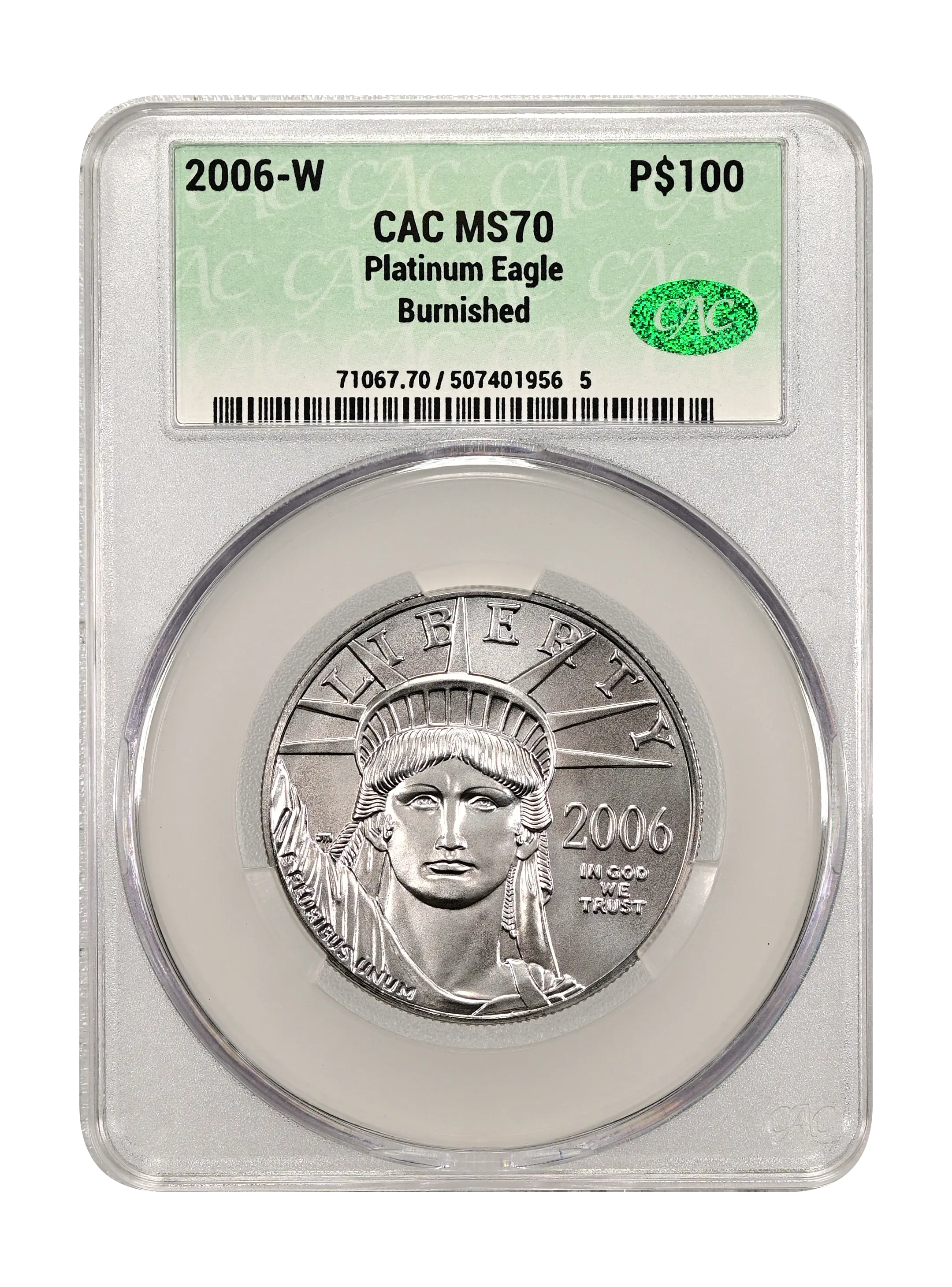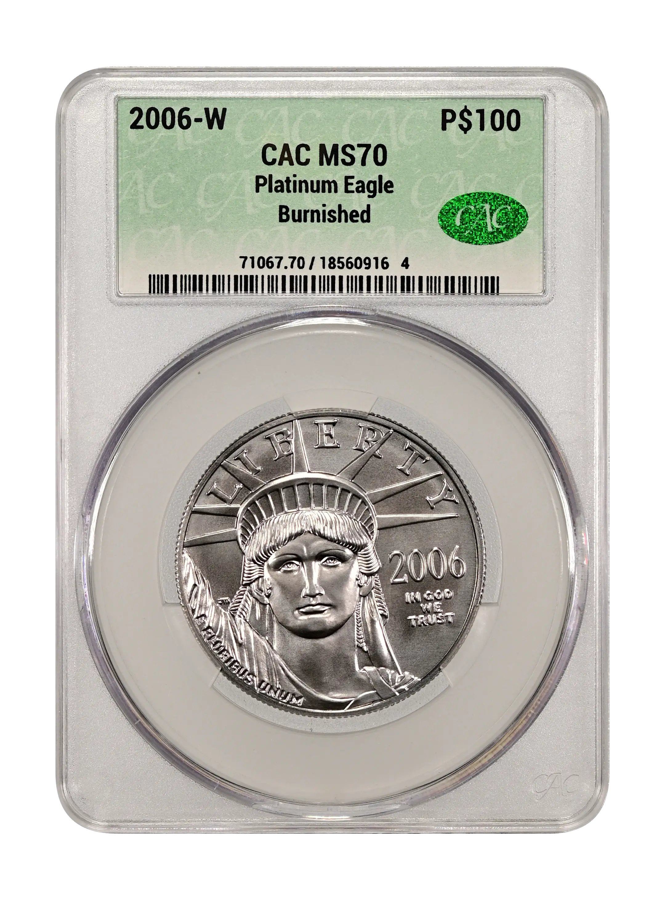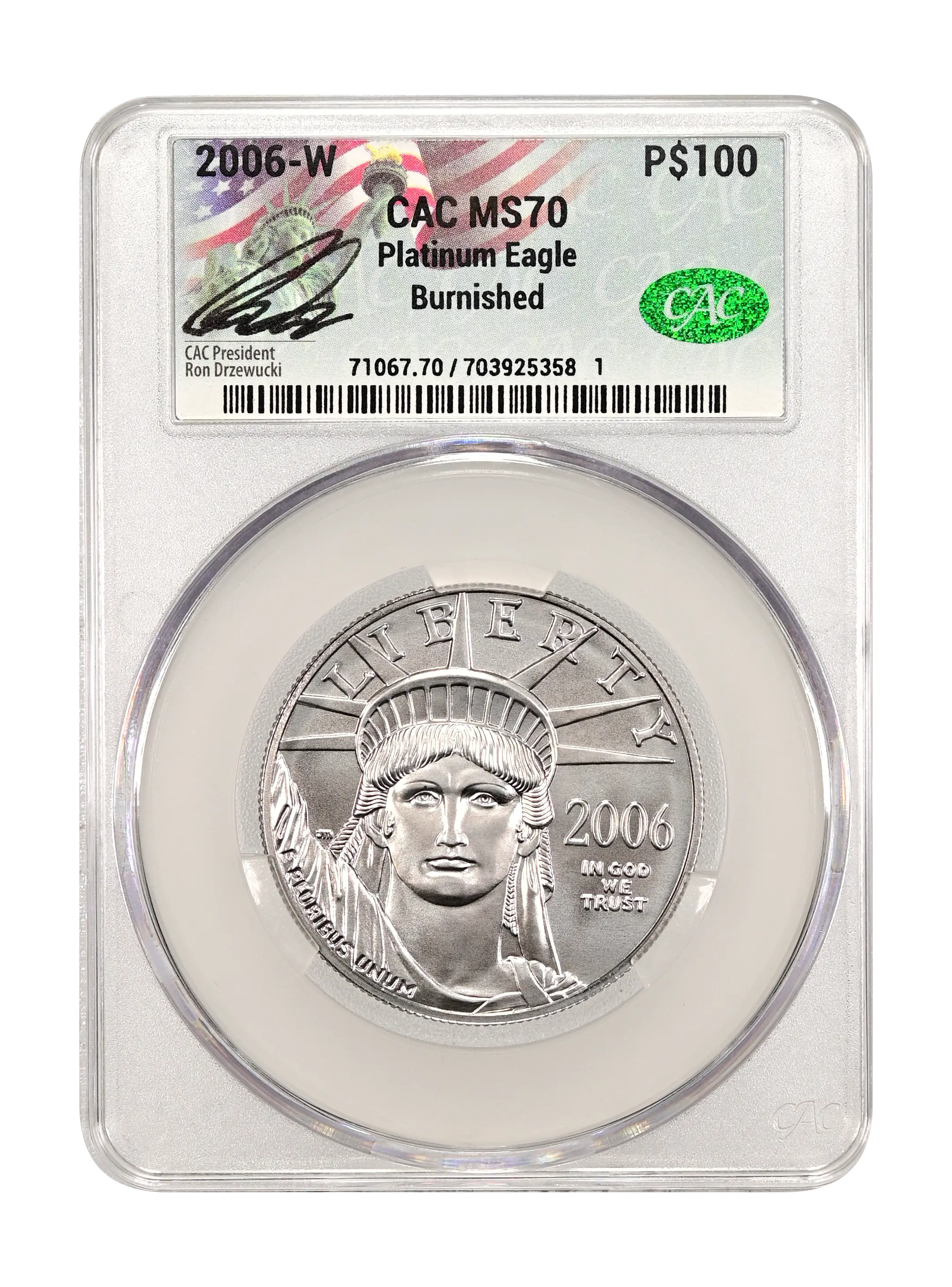 2006-W Burnished Platinum Eagle P$100 CAC MS70