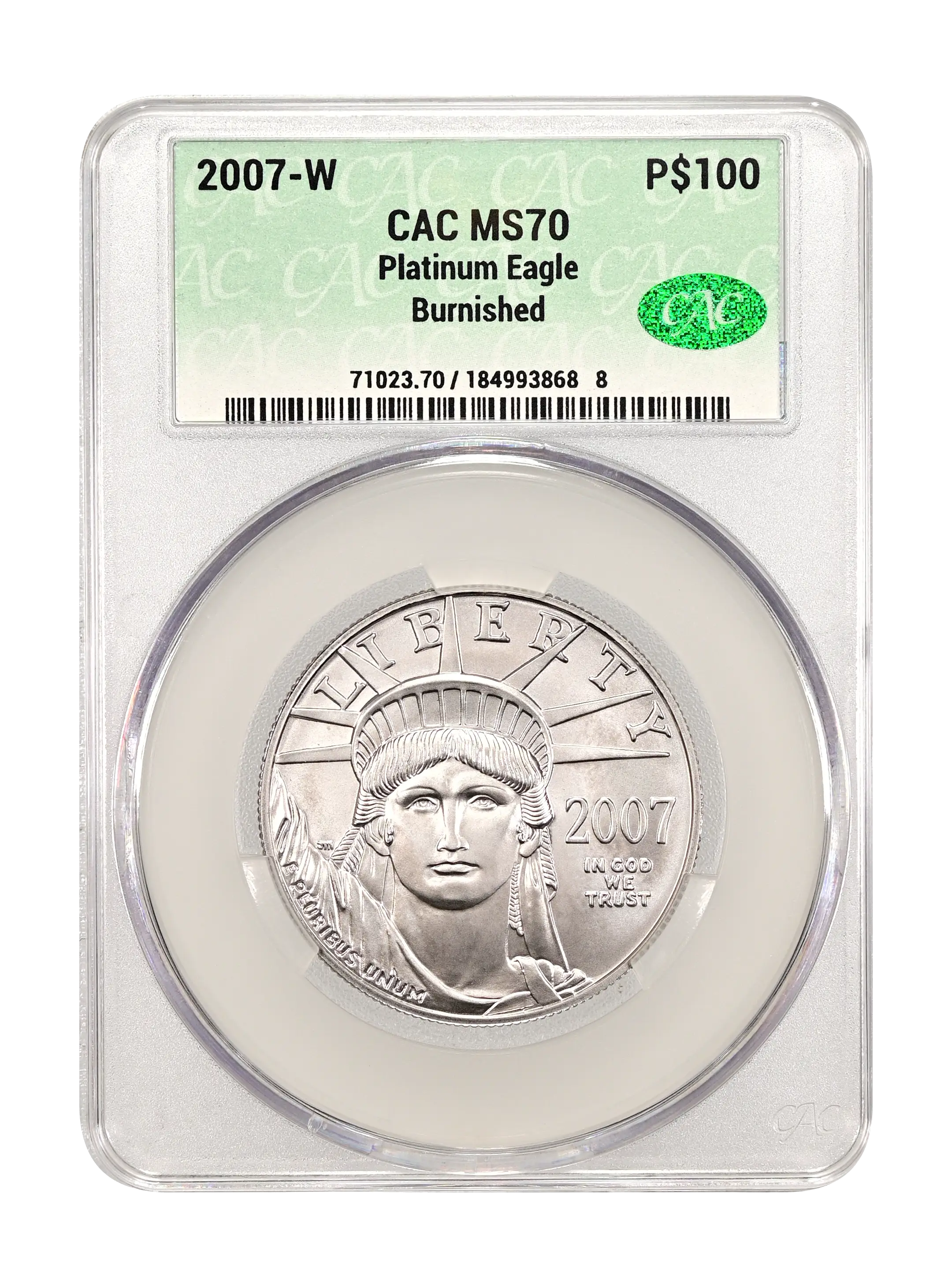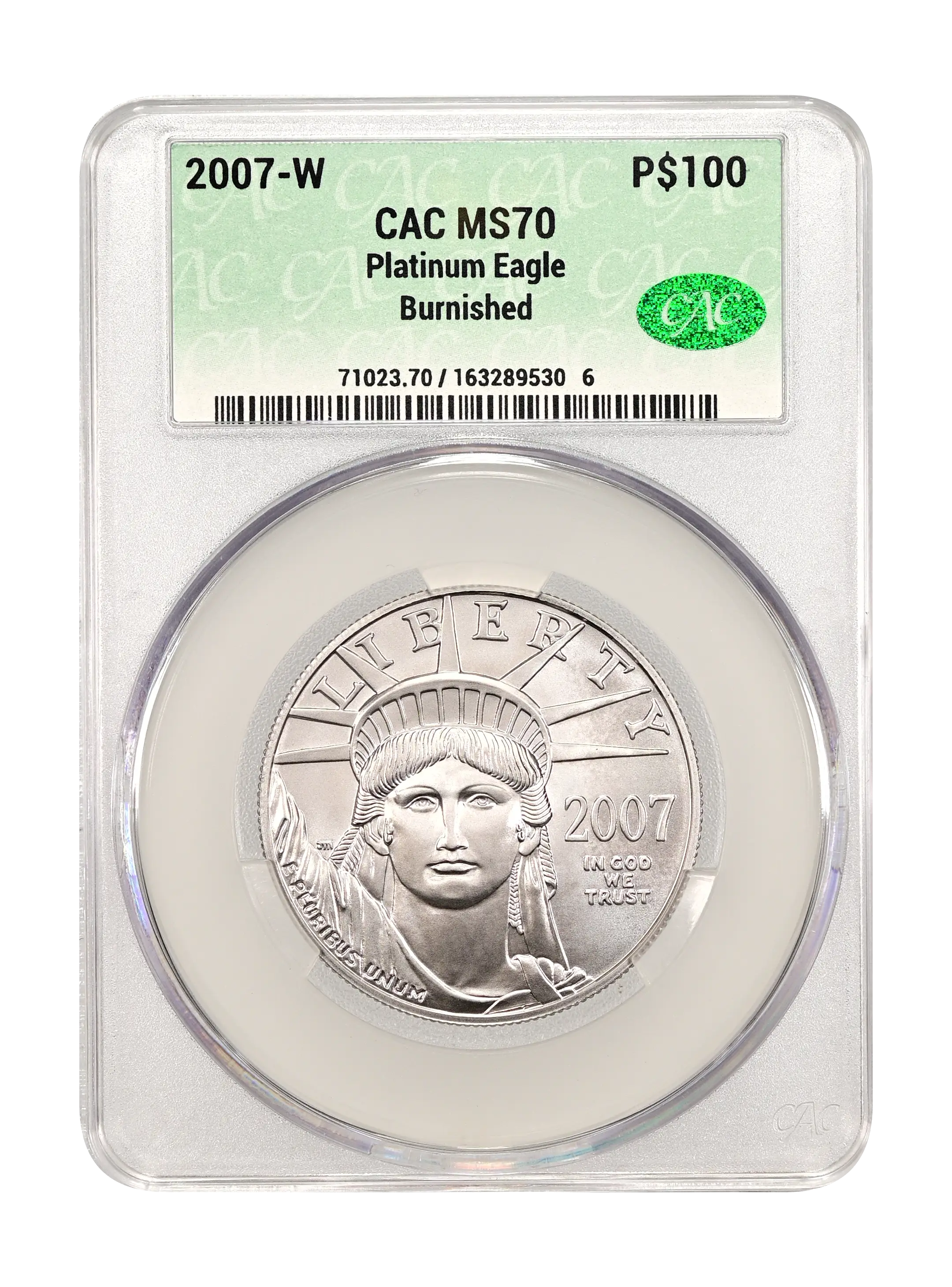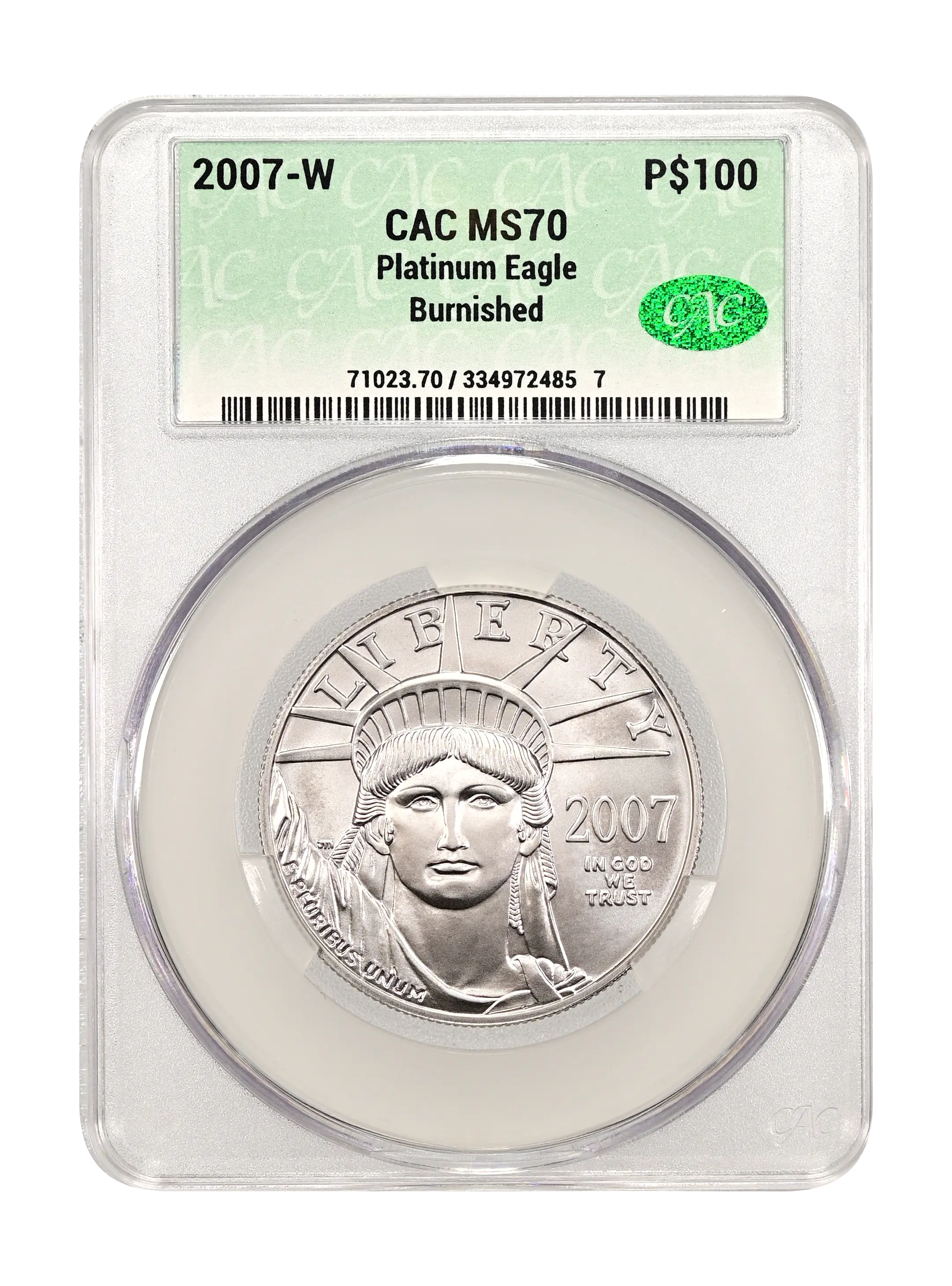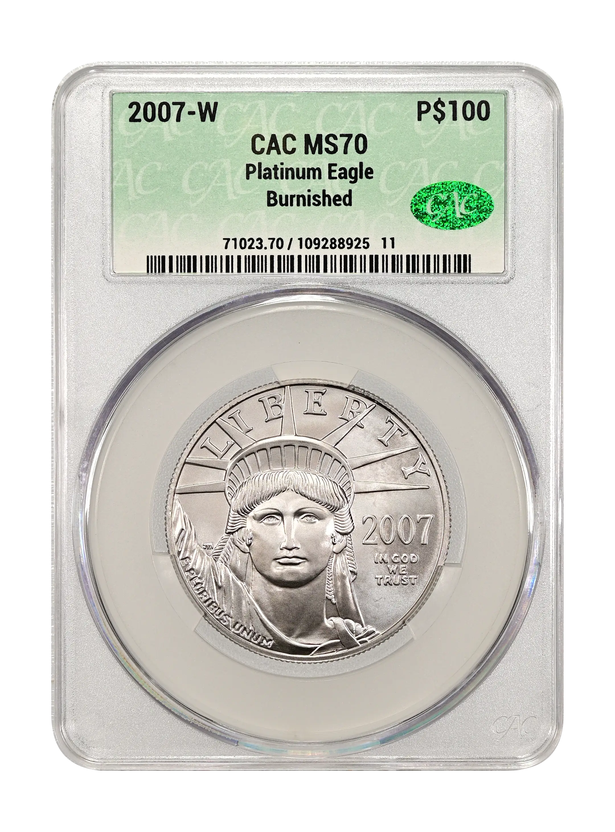 2007-W Burnished Platinum Eagle P$100 CAC MS70