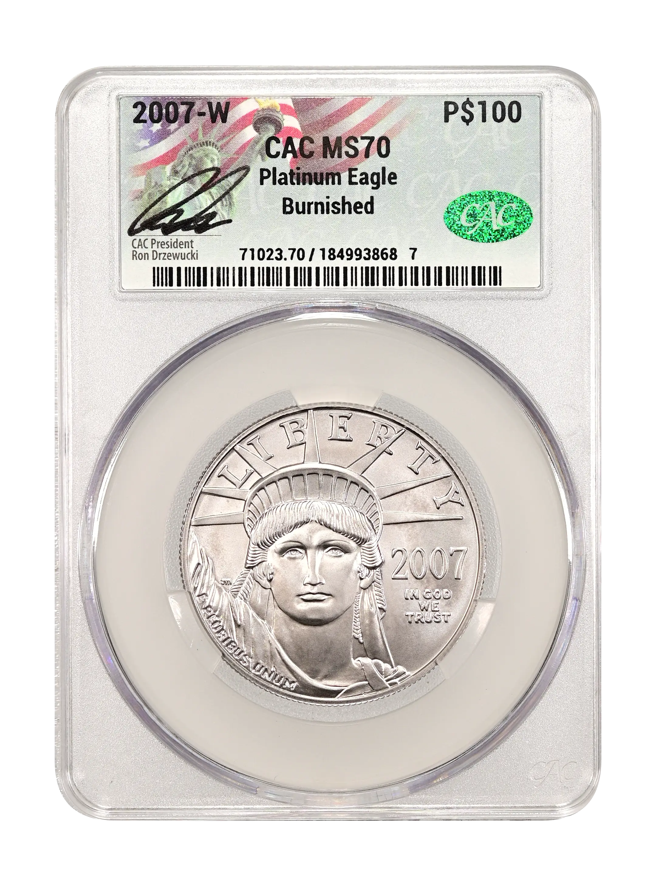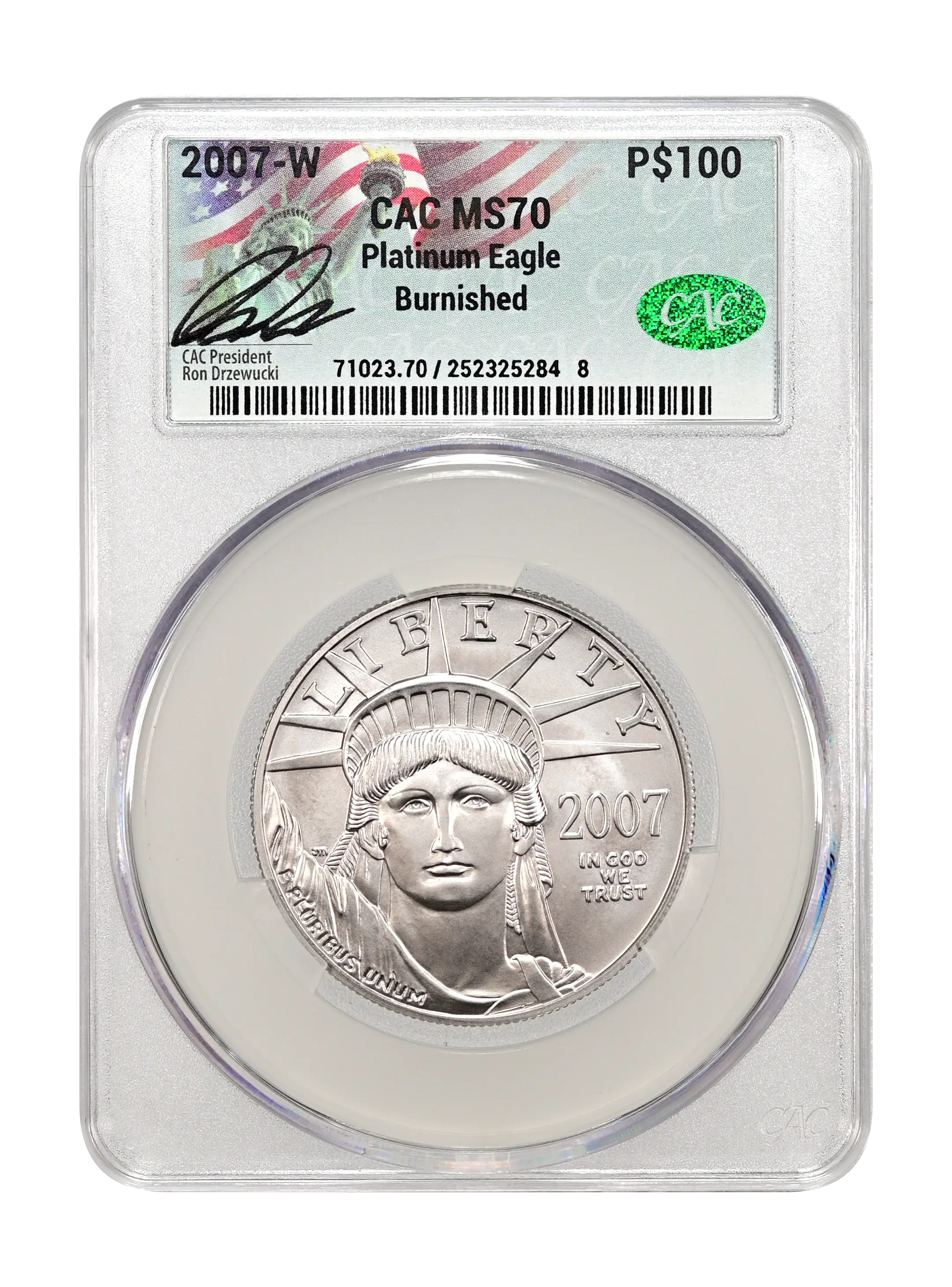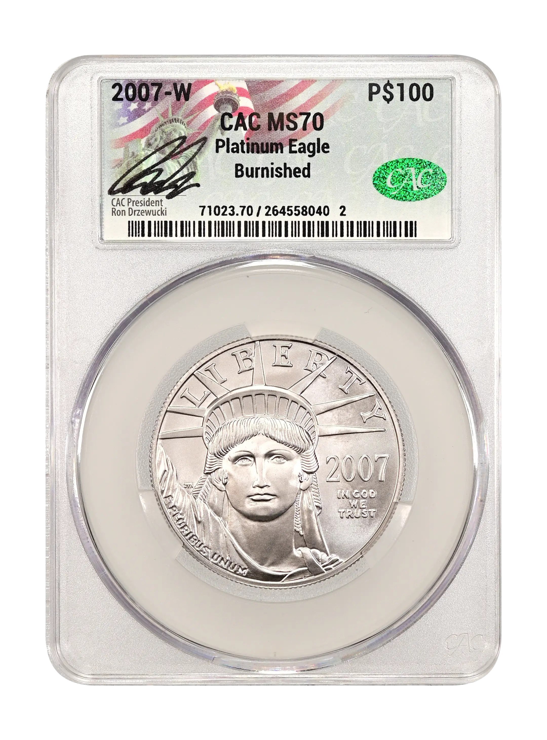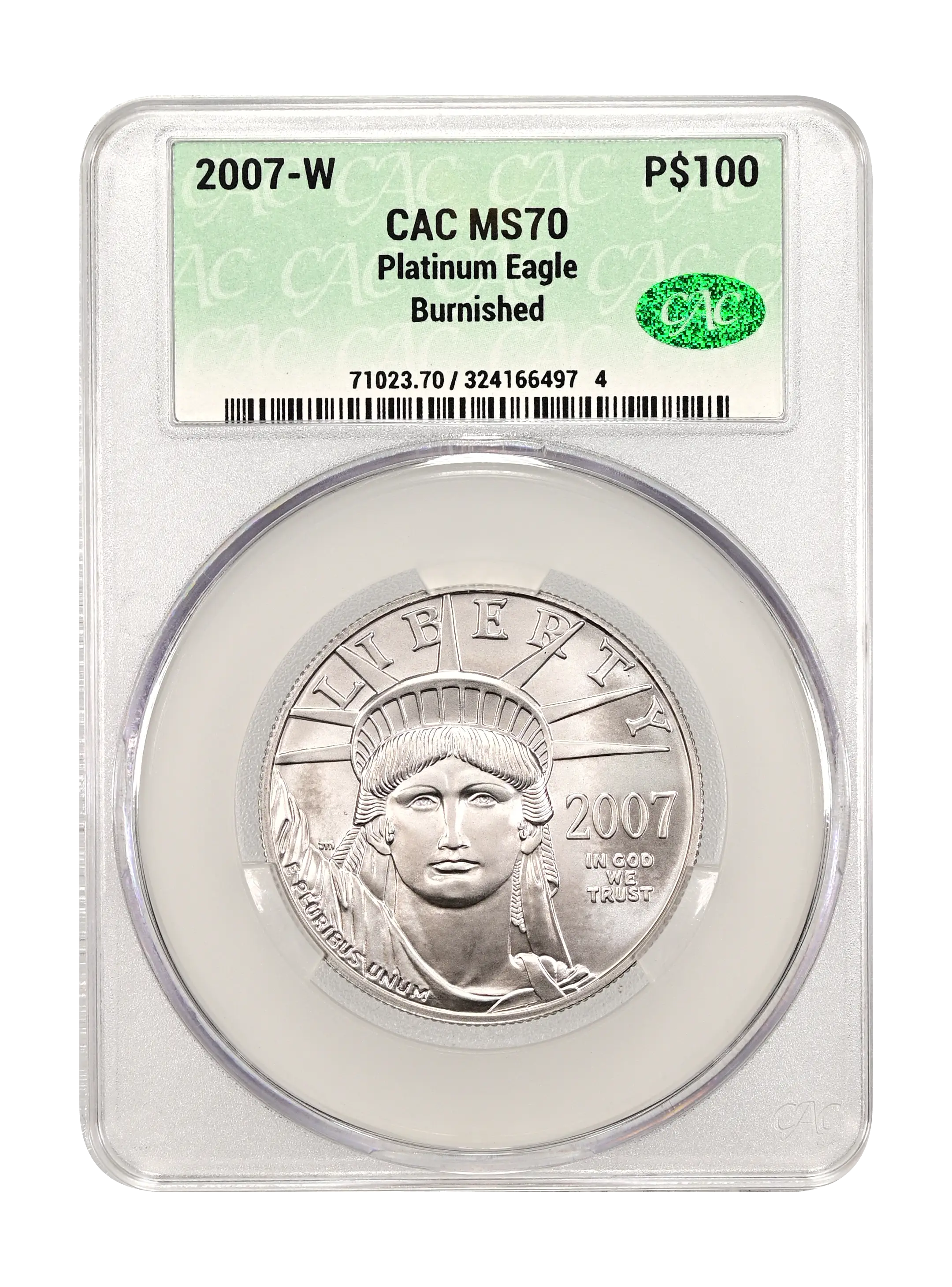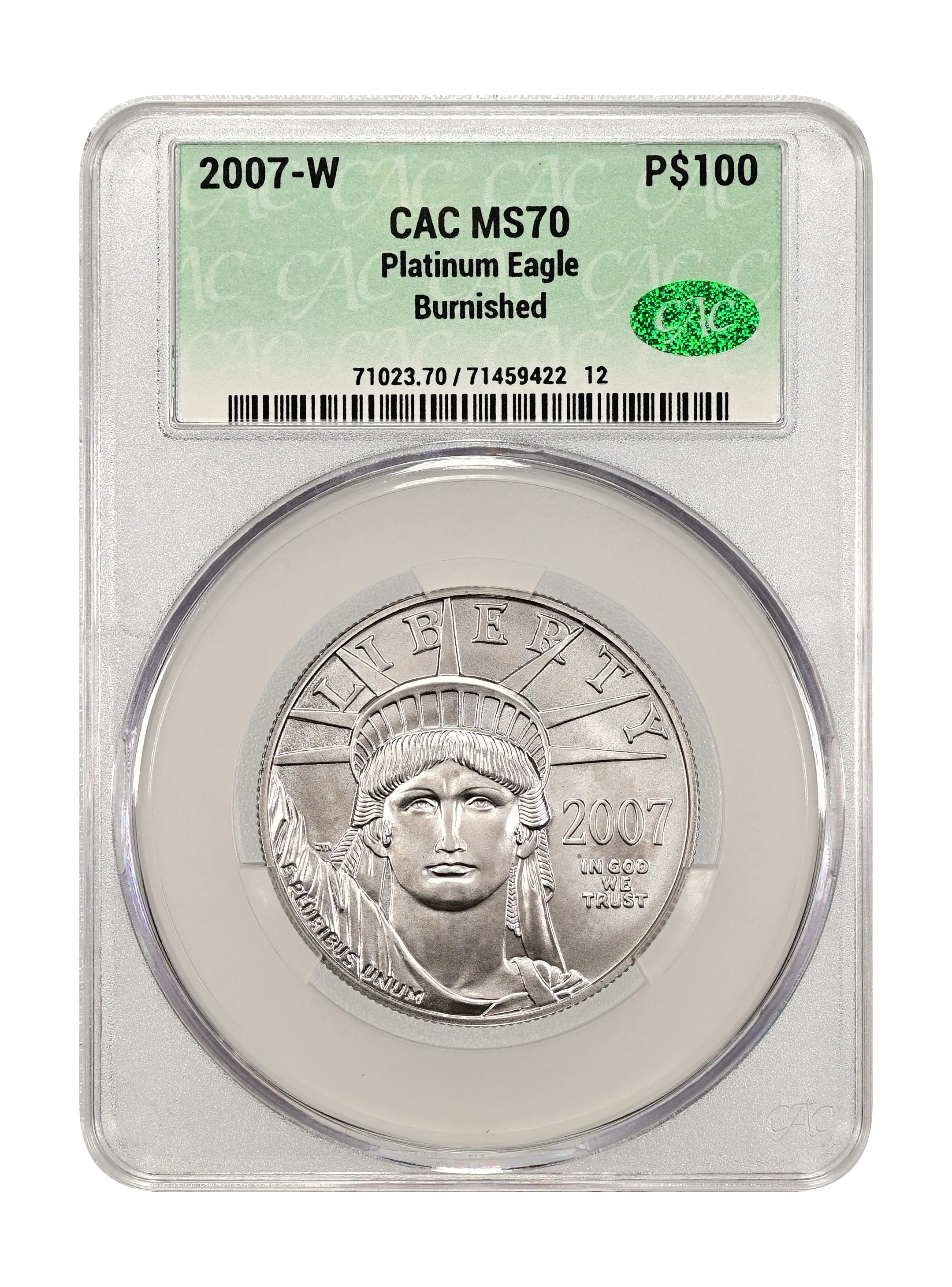2007-W Burnished Platinum Eagle P$100 CAC MS70
