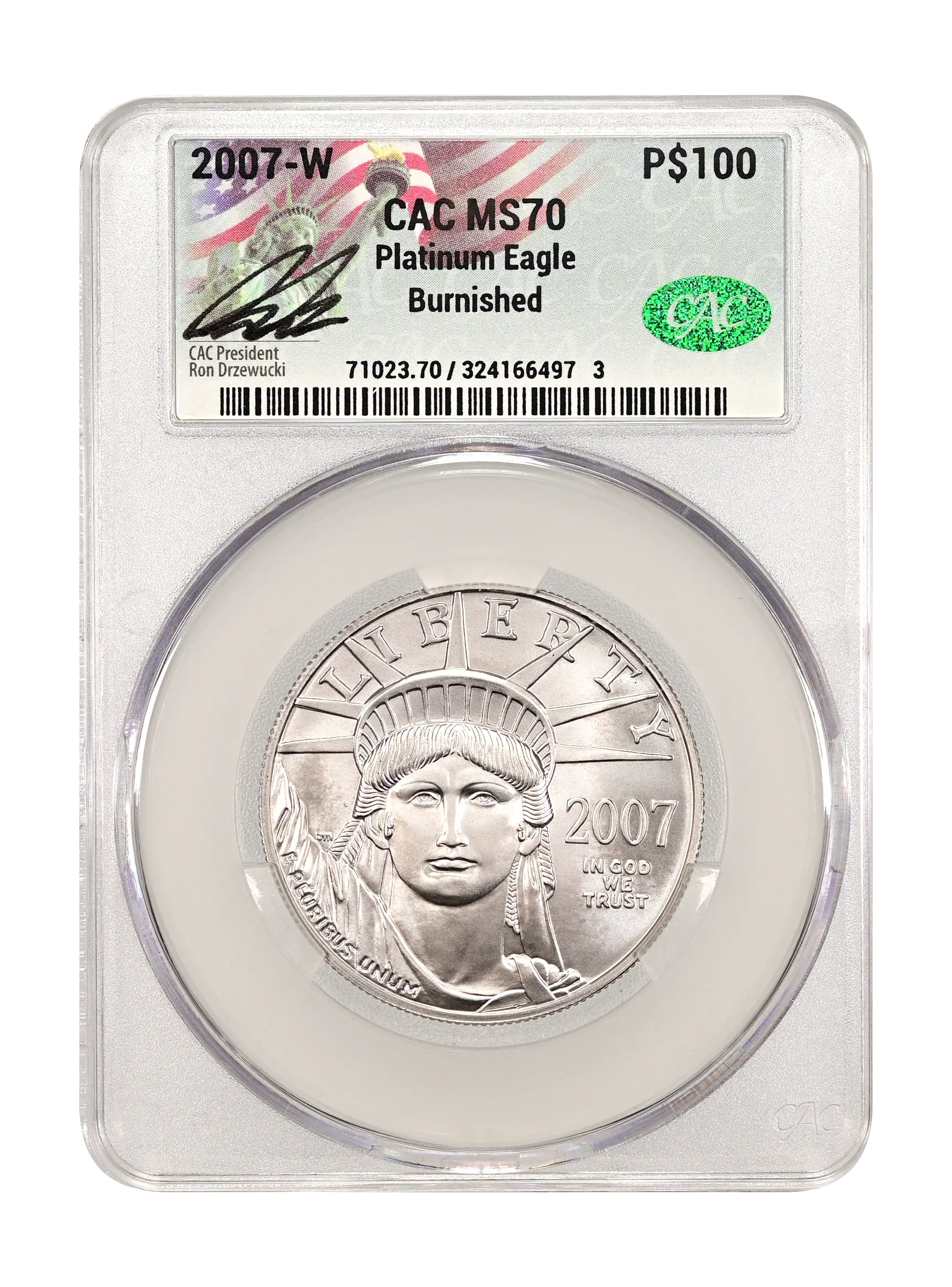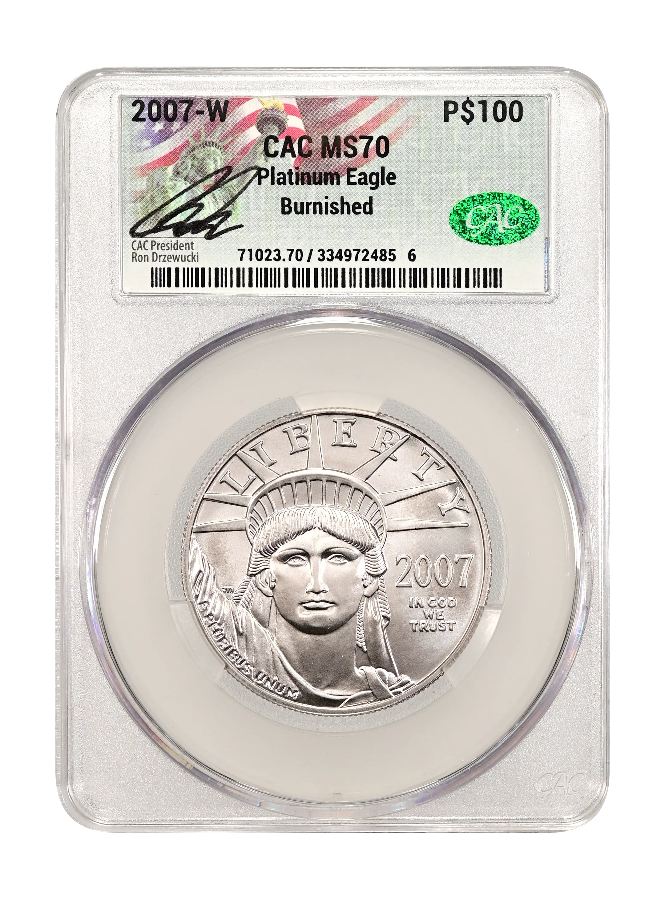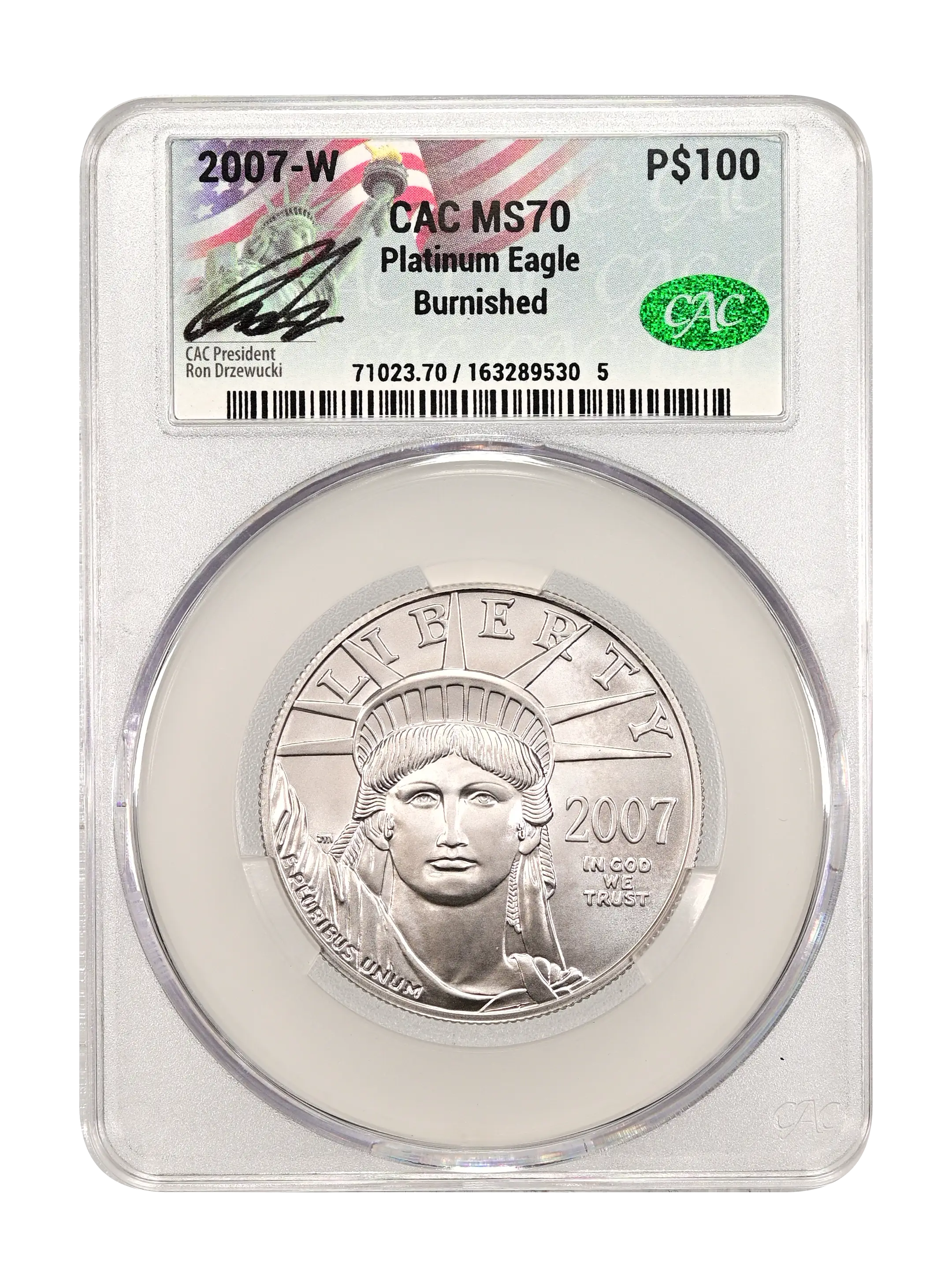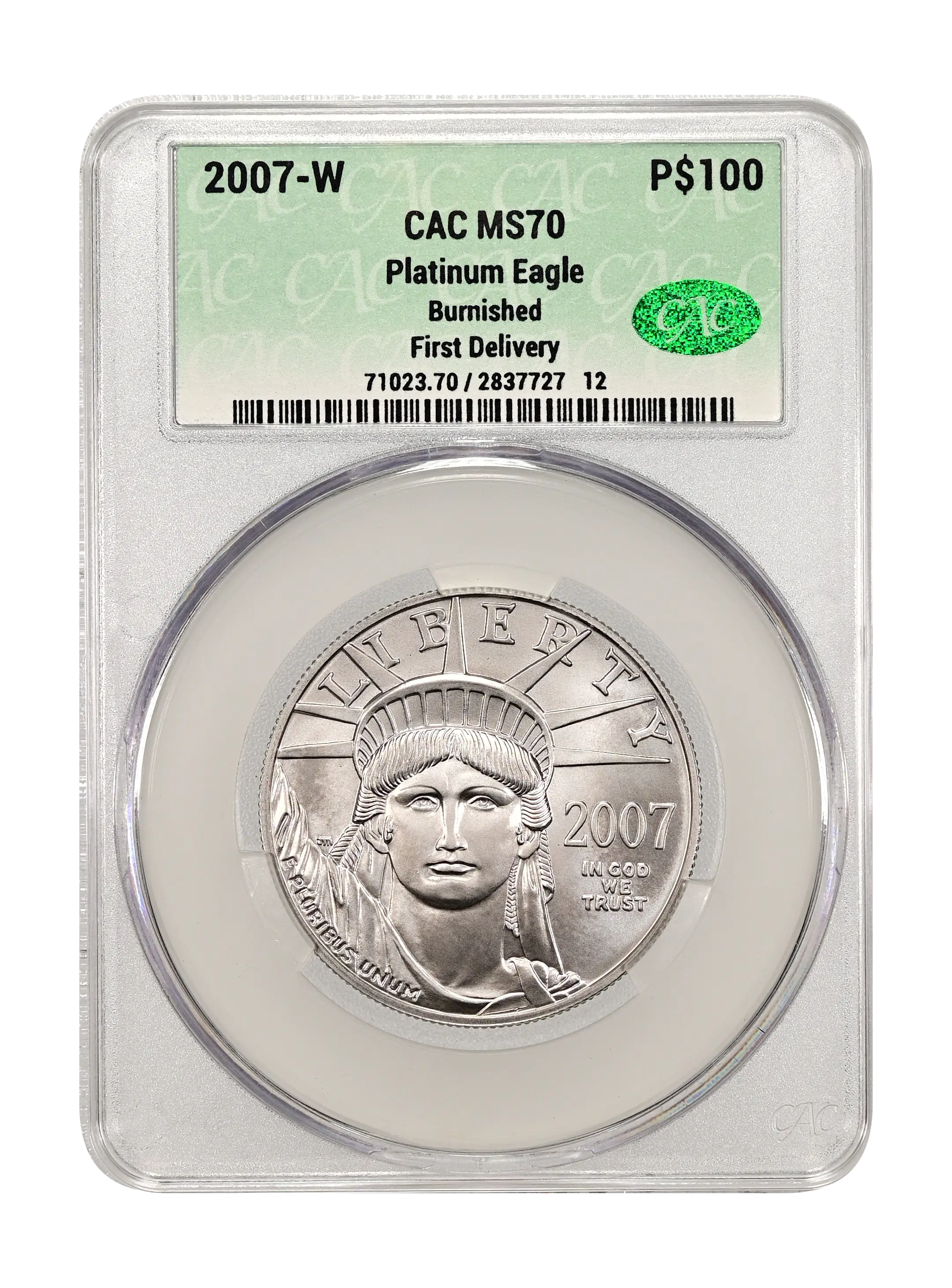 2007-W Burnished Platinum Eagle P$100 CAC MS70