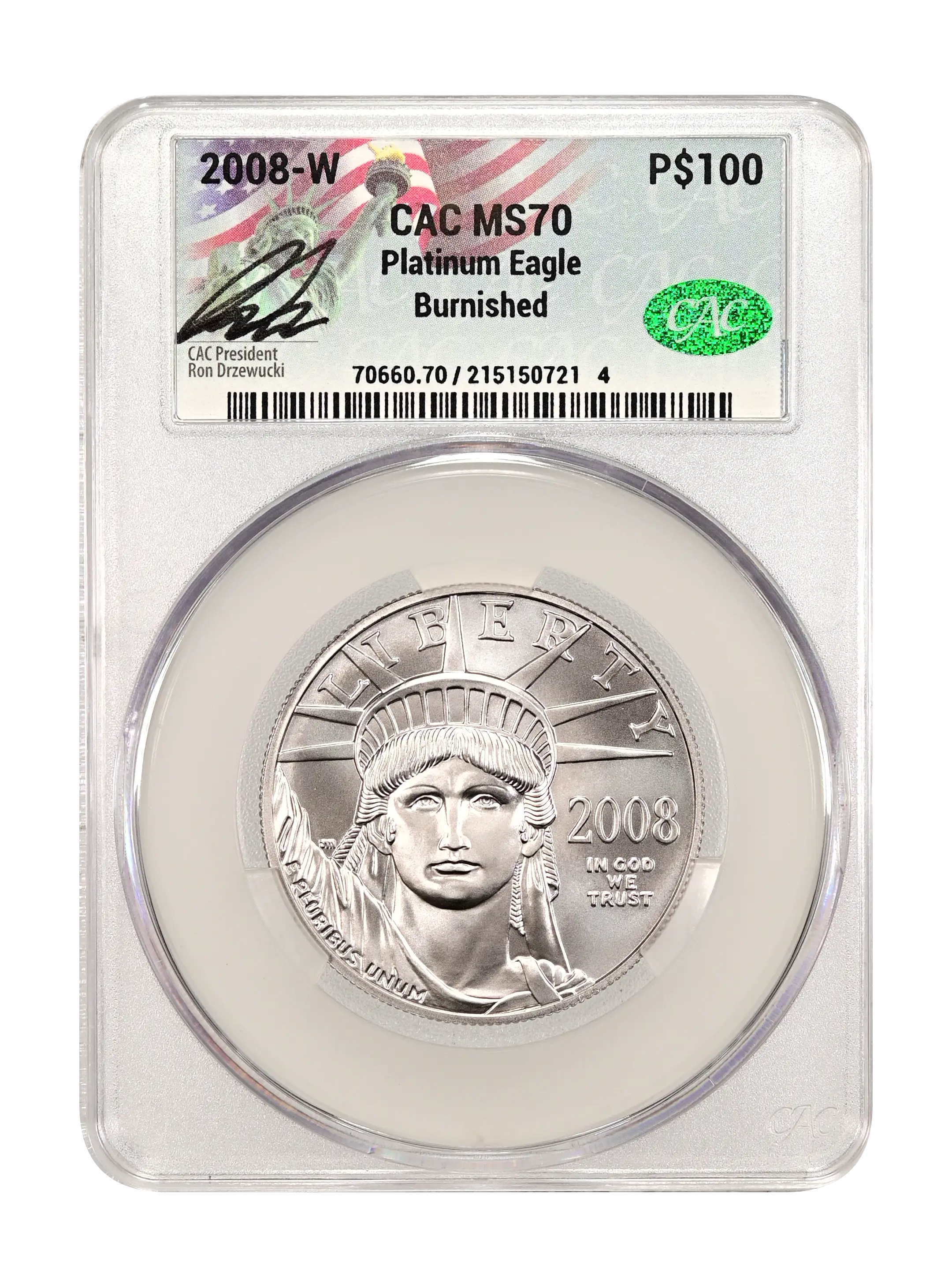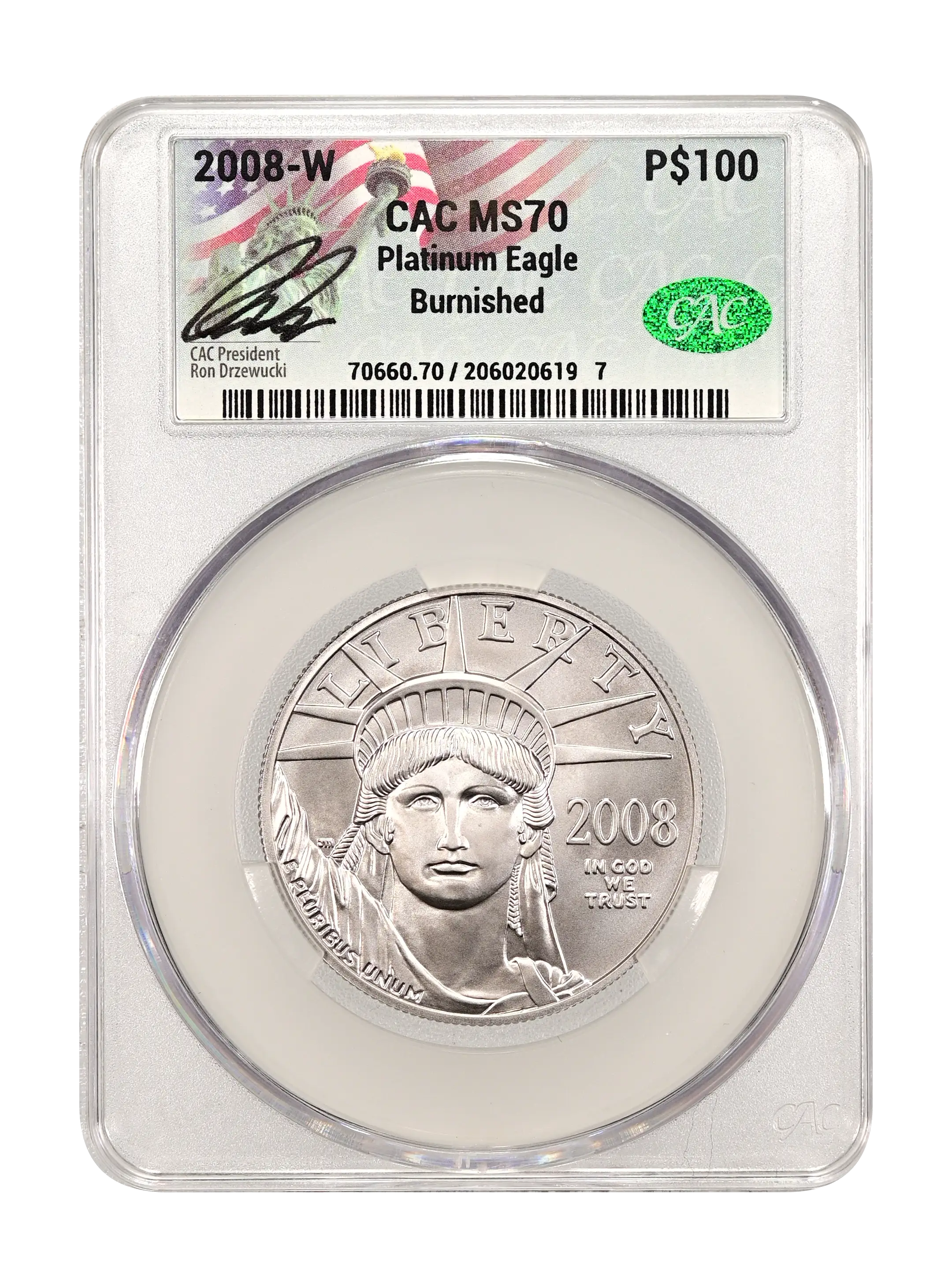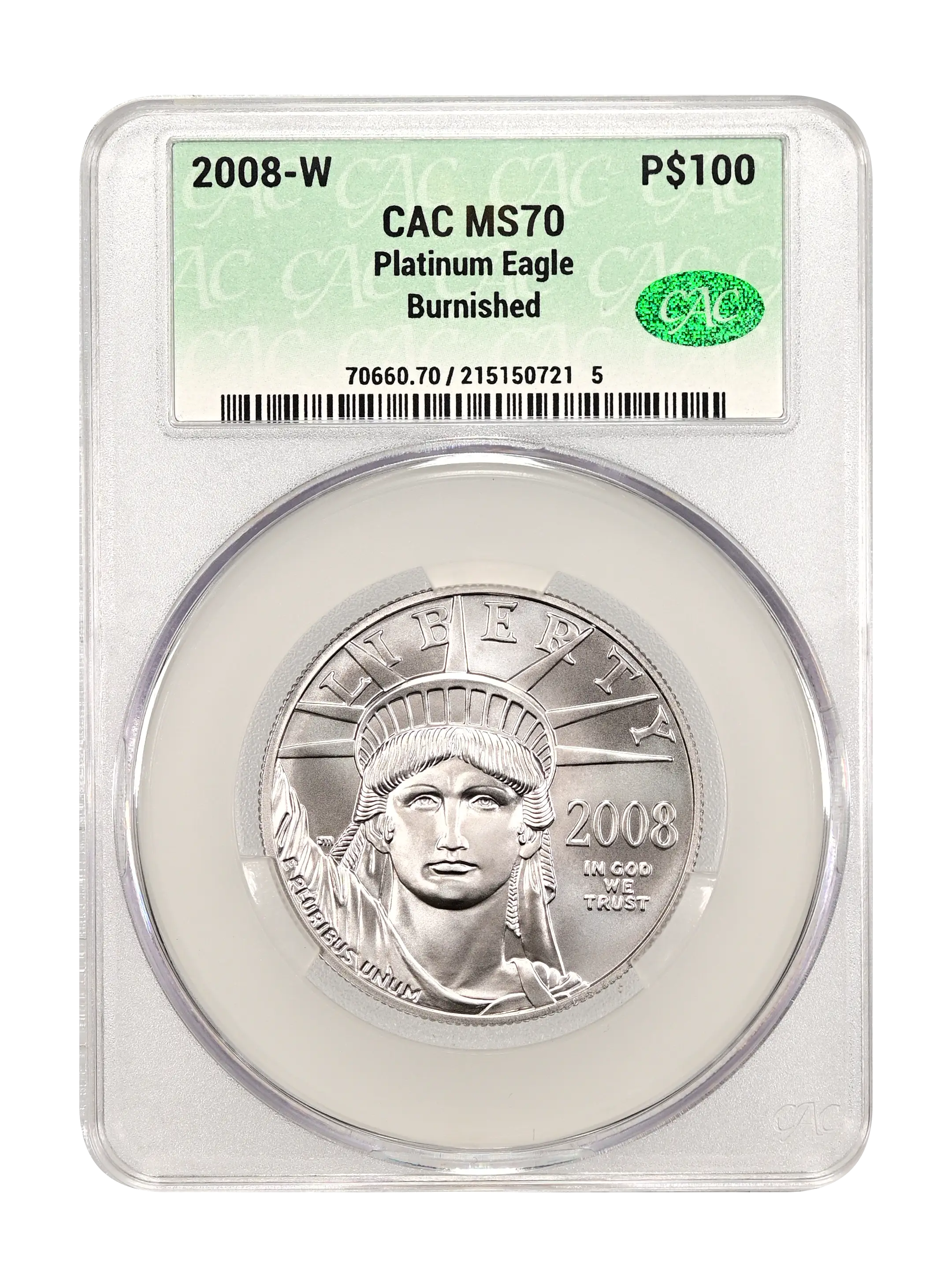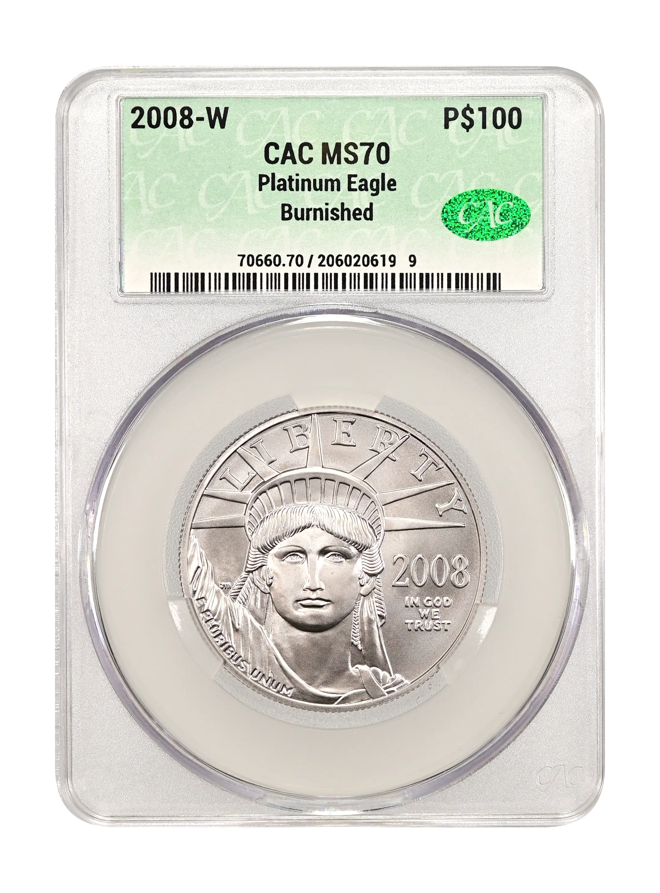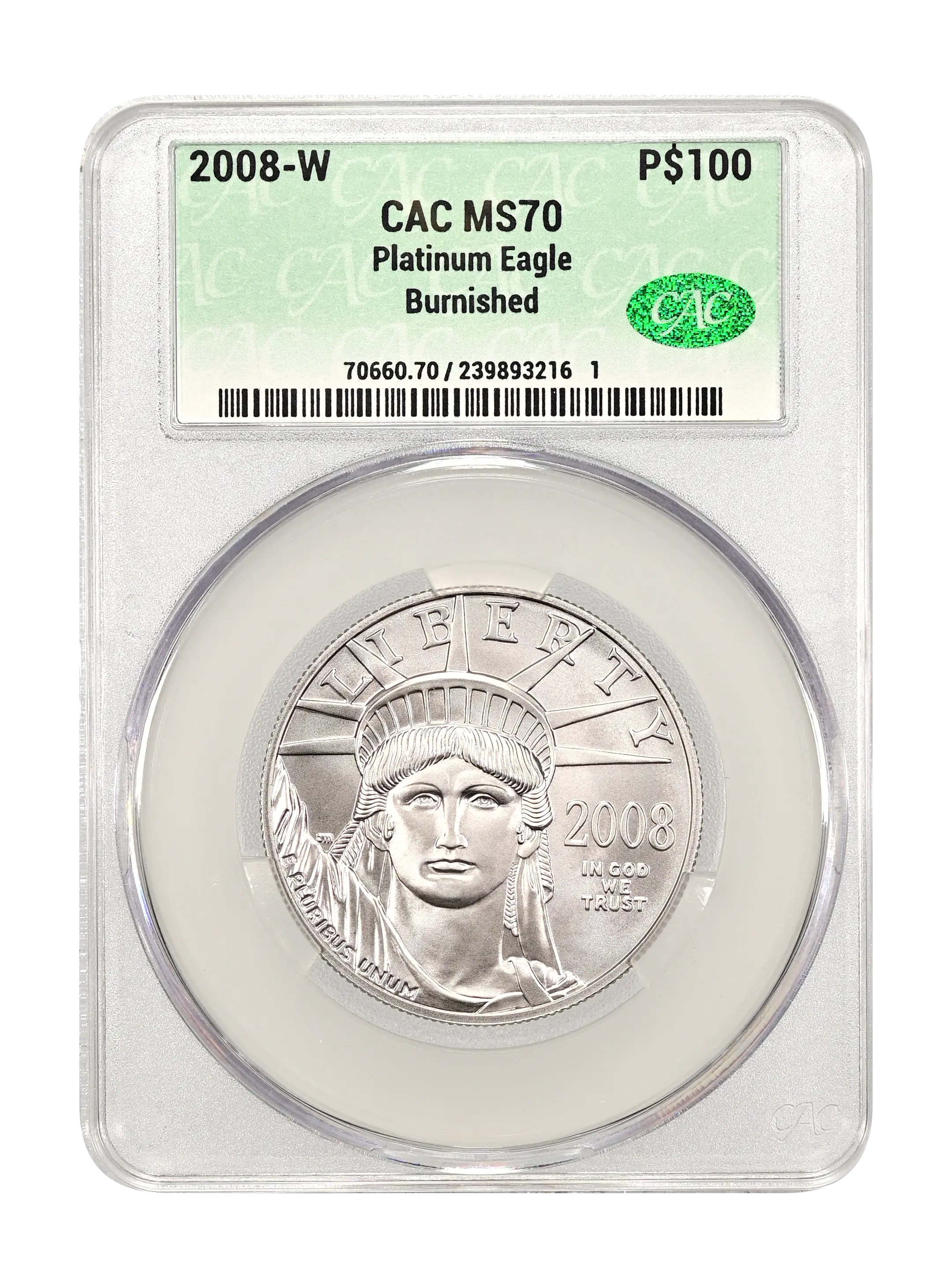 2008-W Burnished Platinum Eagle P$100 CAC MS70