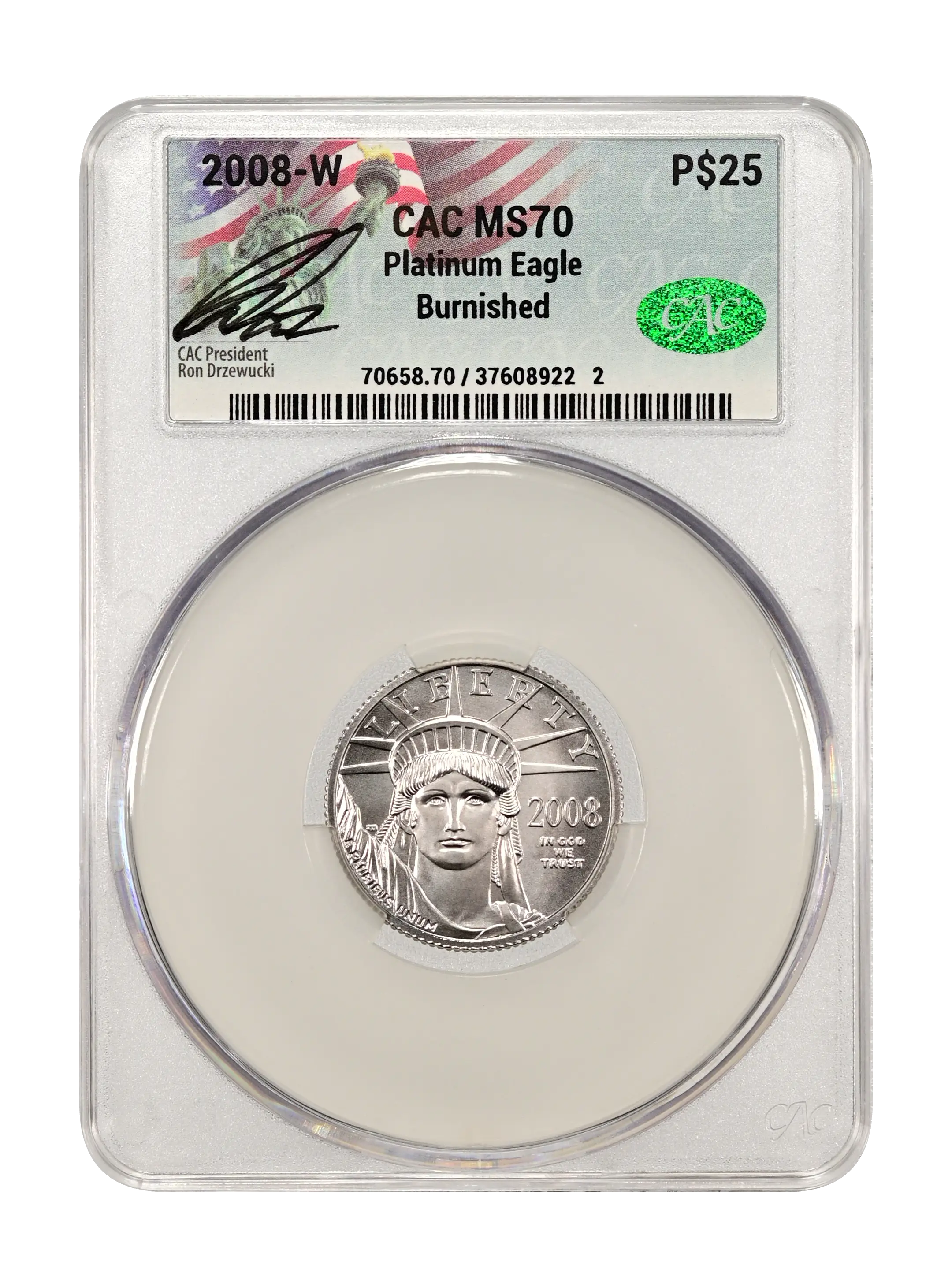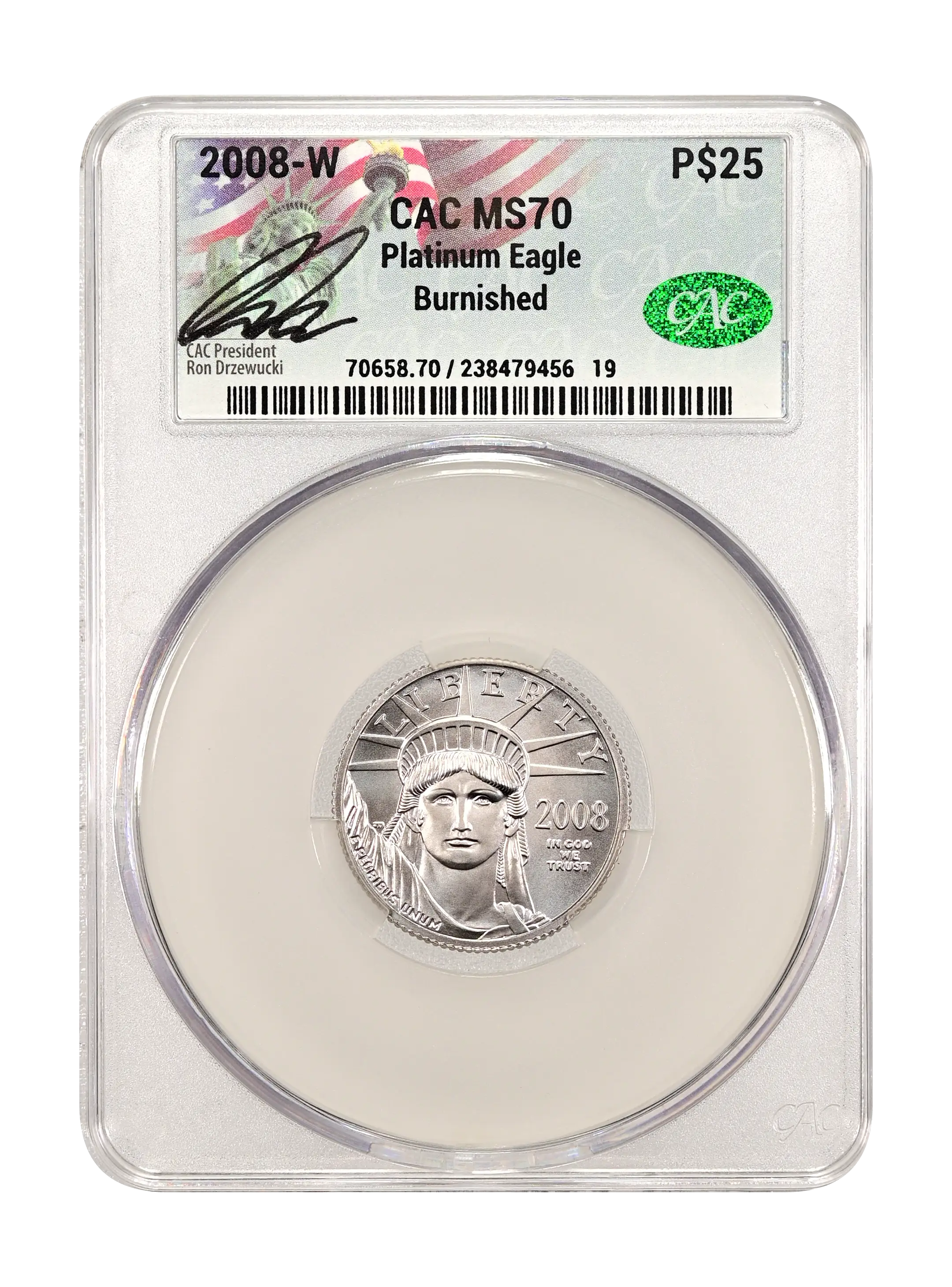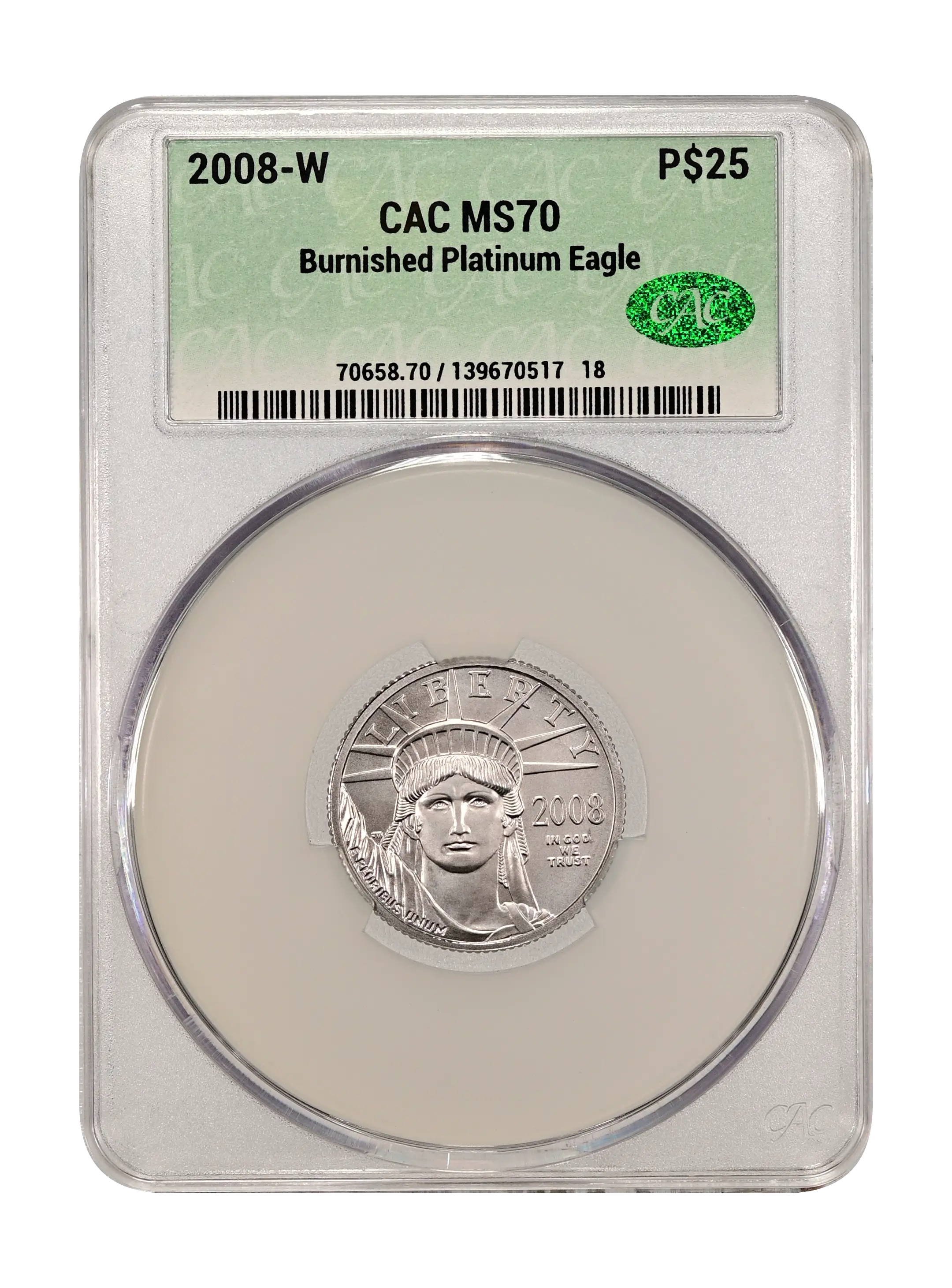 2008-W Burnished Platinum Eagle P$25 CAC MS70