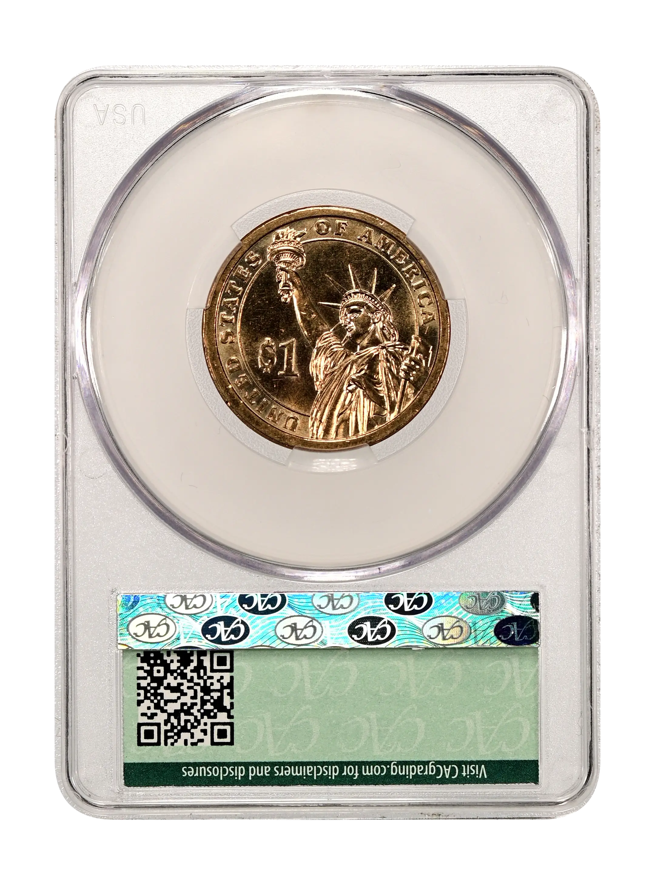 Reverse: The statue of Liberty spans the design from lower right to upper left with a large "$1" in the right field. UNITED STATES OF AMERICA spans the periphery from 7-3 o'clock.