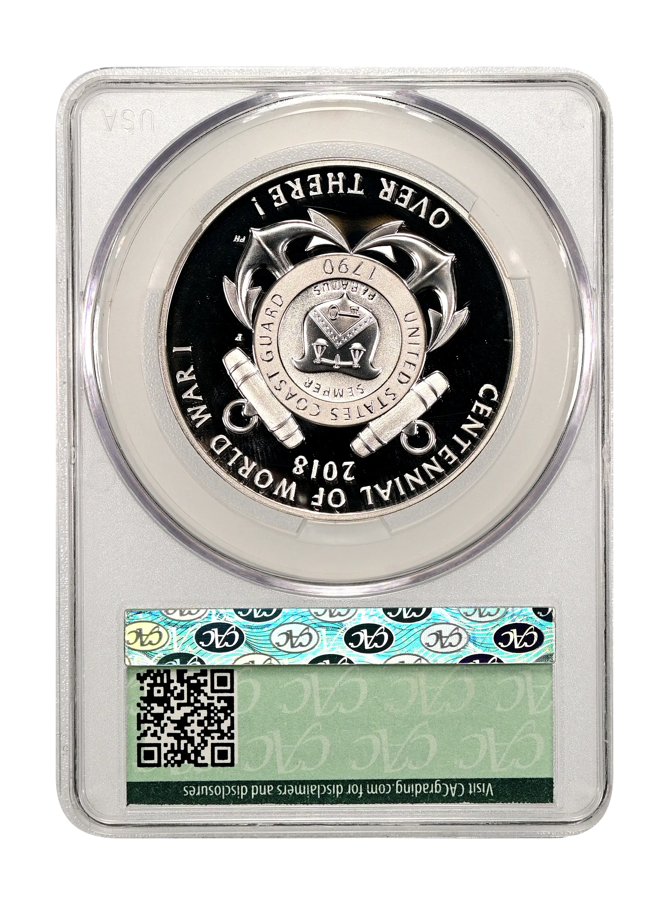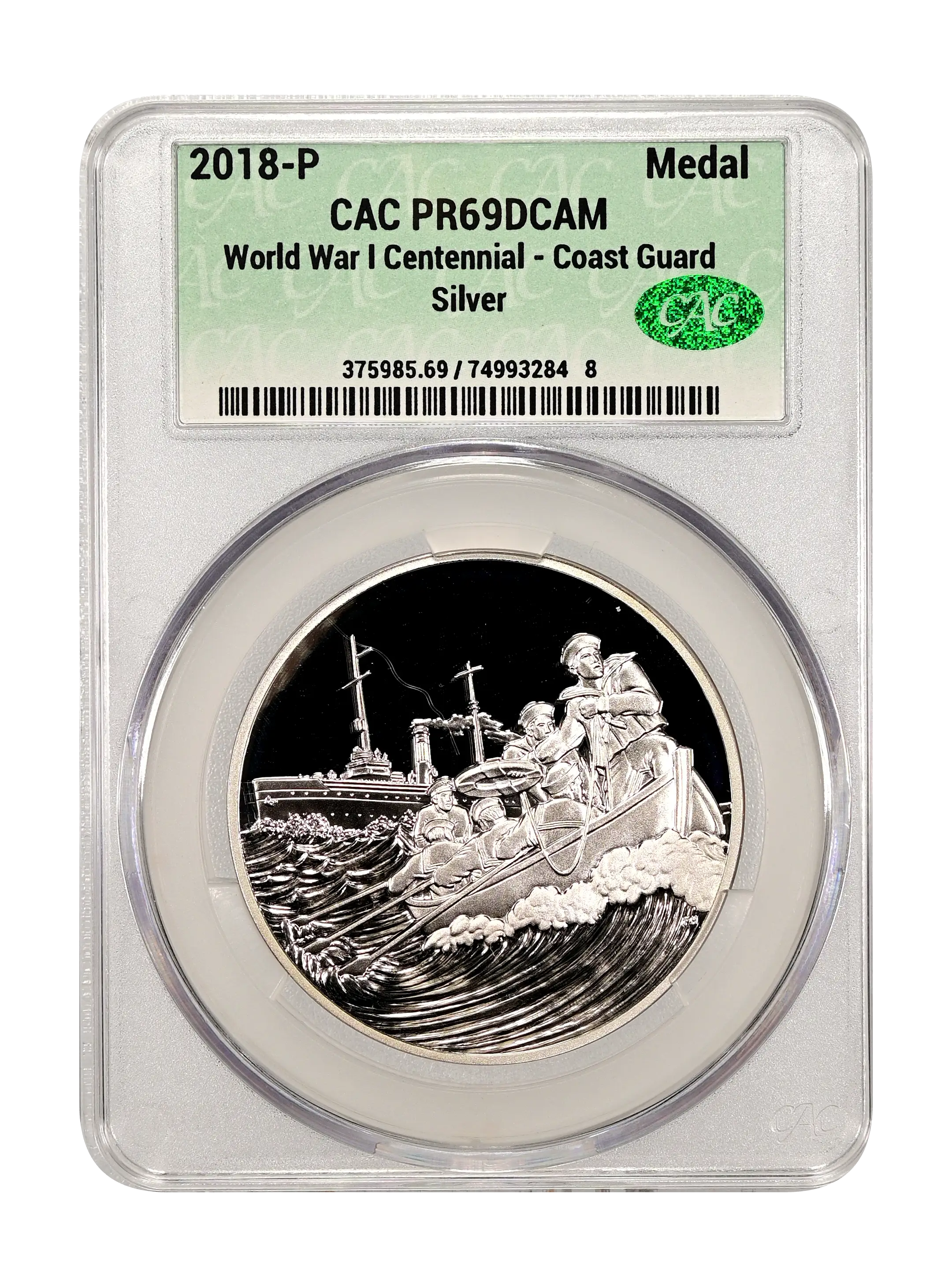 2018-P World War I Centennial - Coast Guard Medal Silver DCAM (Proof) CAC PR69DCAM