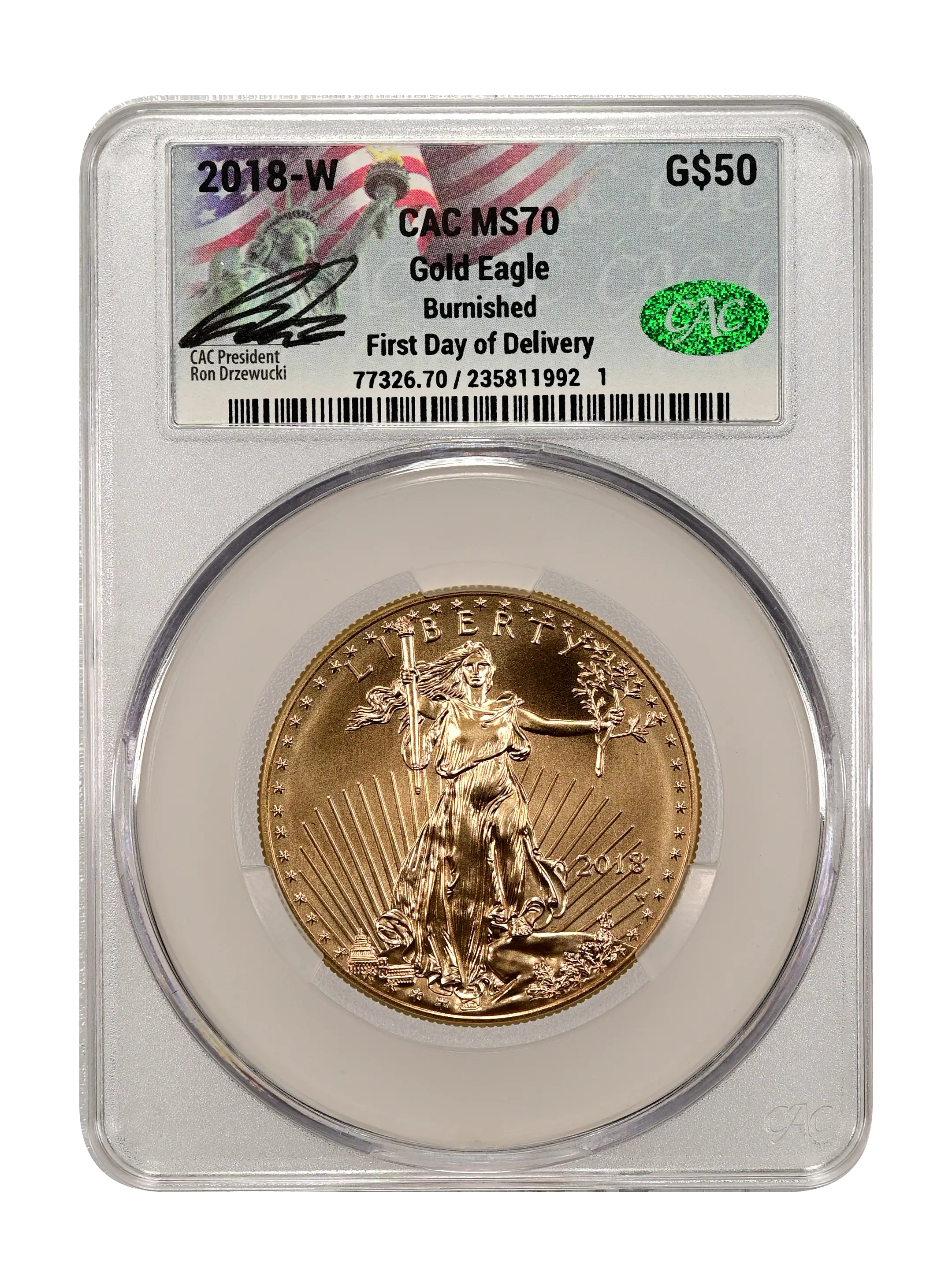 2018-W Burnished Gold Eagle G$50 CAC MS70