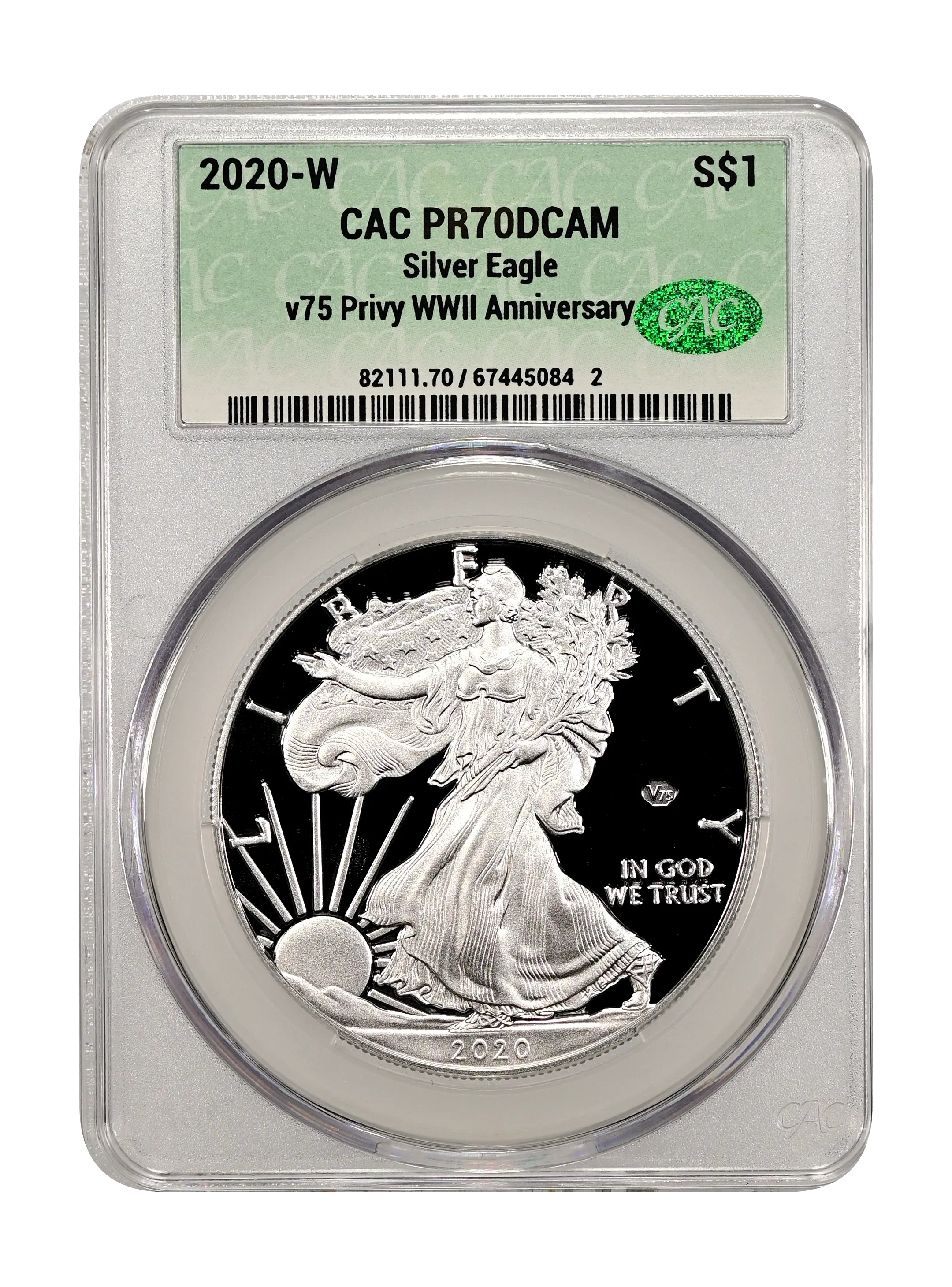 2020-W Silver Eagle S$1 v75 Privy WWII Anniversary DCAM (Proof) CAC PR67DCAM