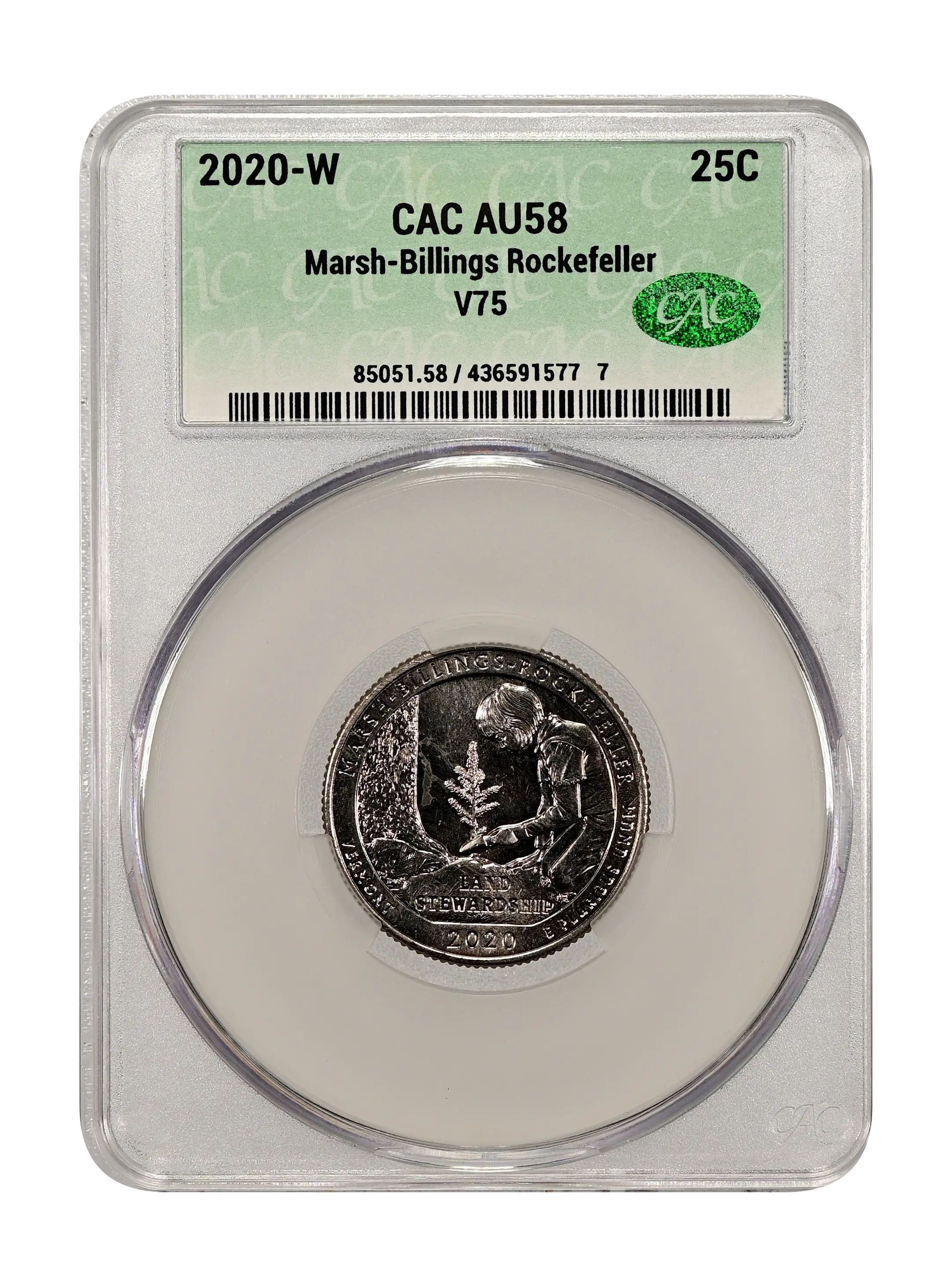 2020-W Marsh-Billings Rockefeller 25c V75 CAC AU DETAILS
