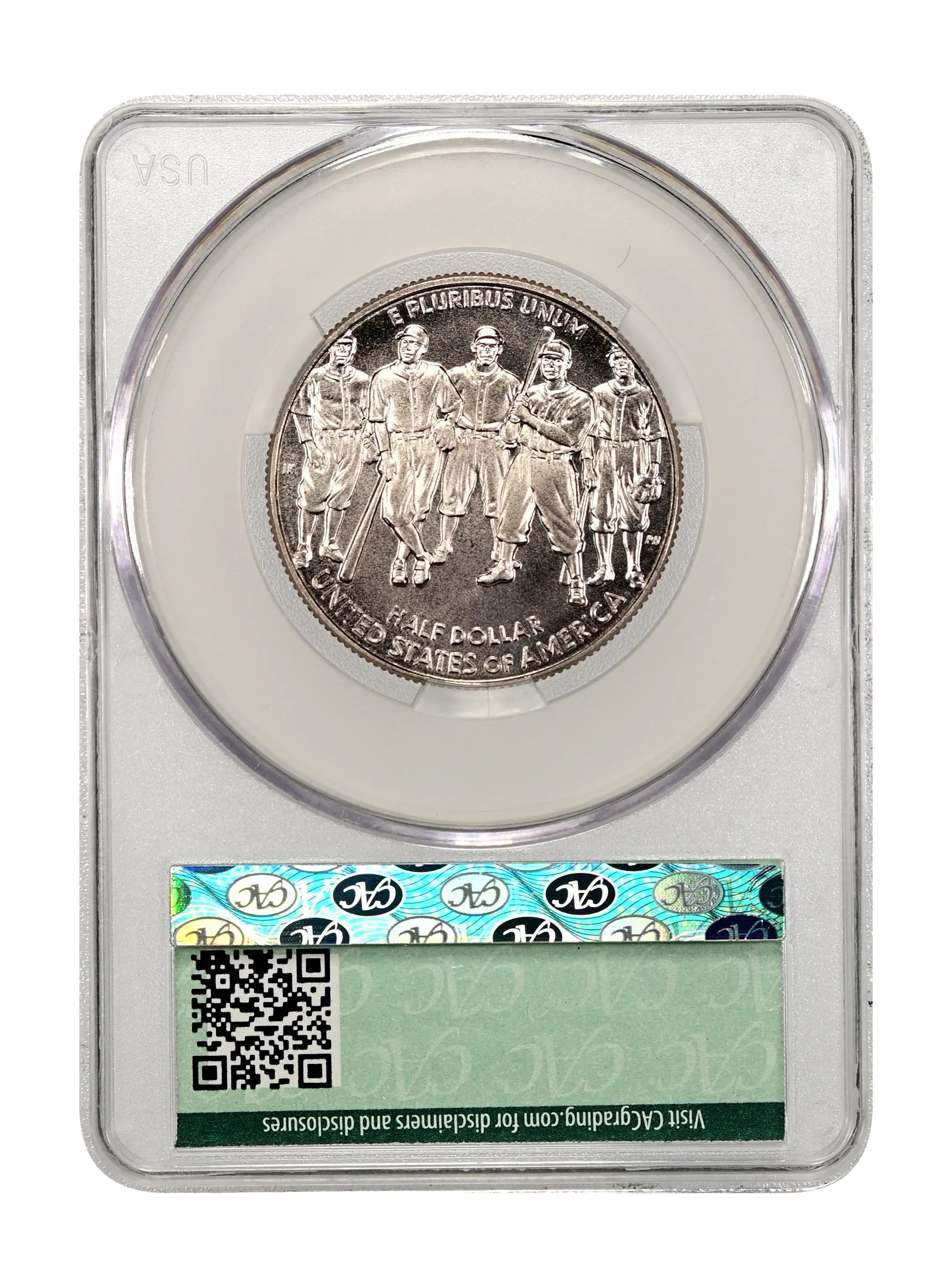 Reverse: This design shows a group of five Negro Leagues Baseball players. Inscriptions are "E PLURIBUS UNUM," "HALF DOLLAR," and "UNITED STATES OF AMERICA."