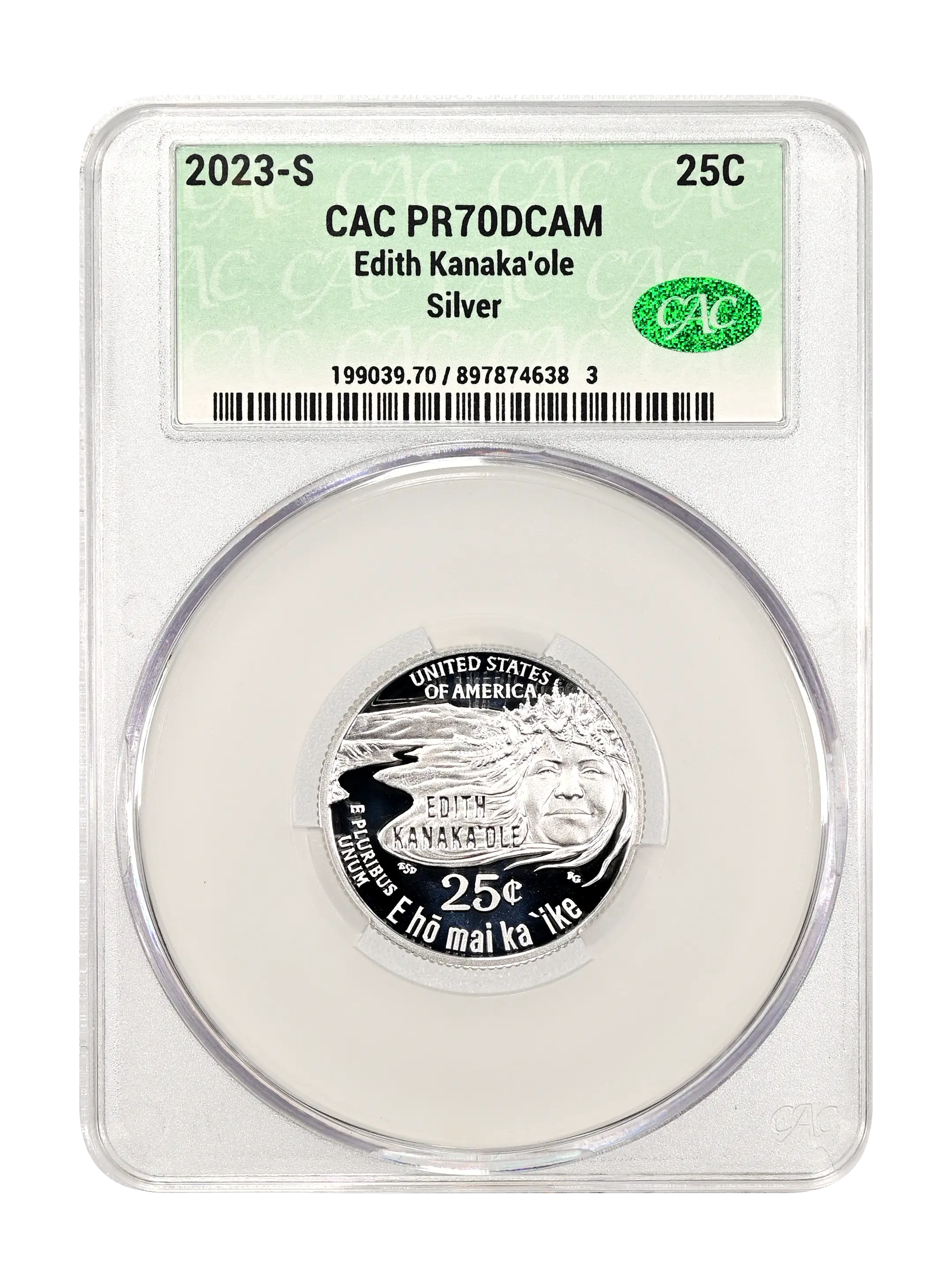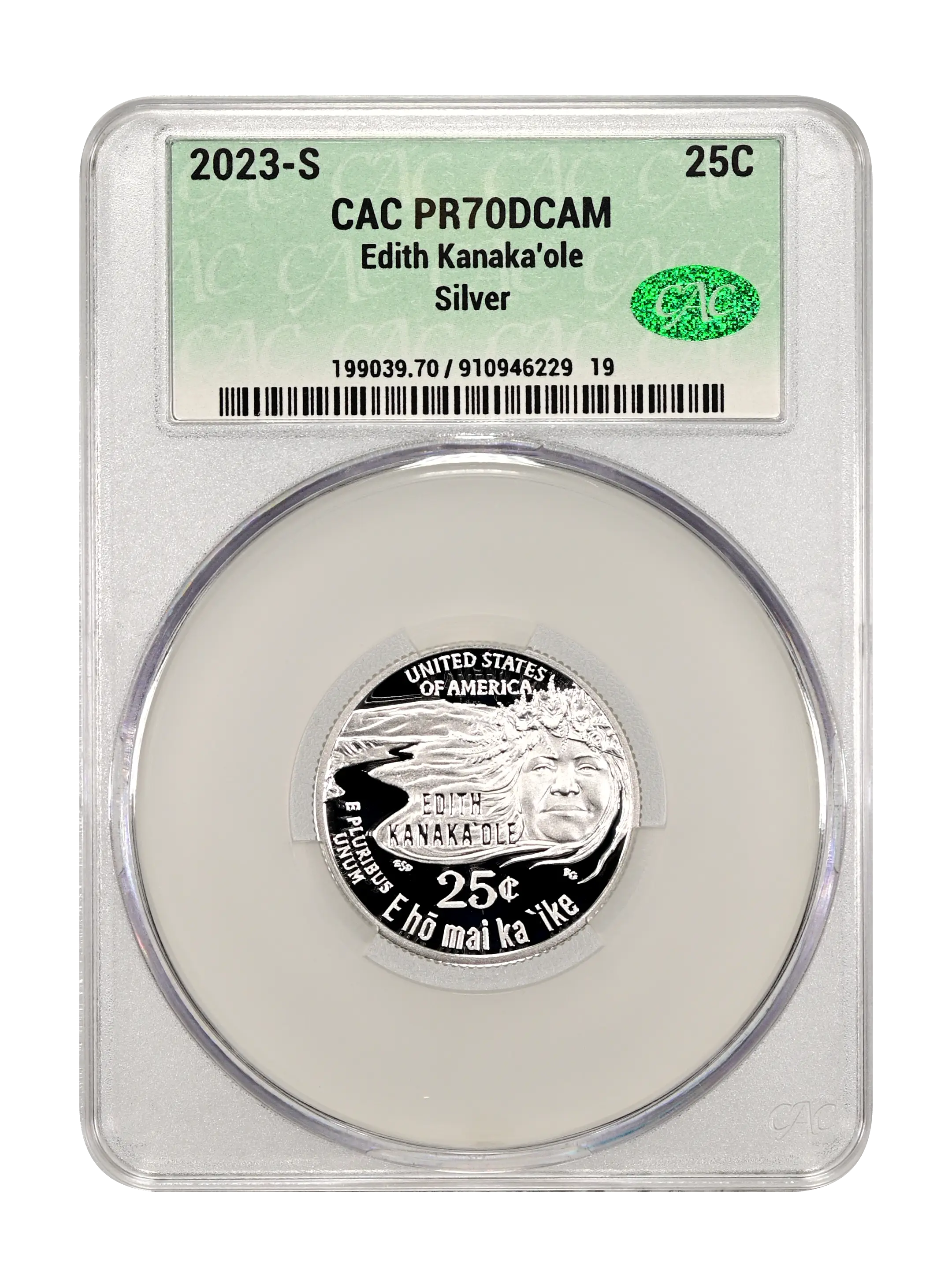 2023-S Edith Kanaka'ole 25c Silver DCAM (Proof) CAC PR70DCAM
