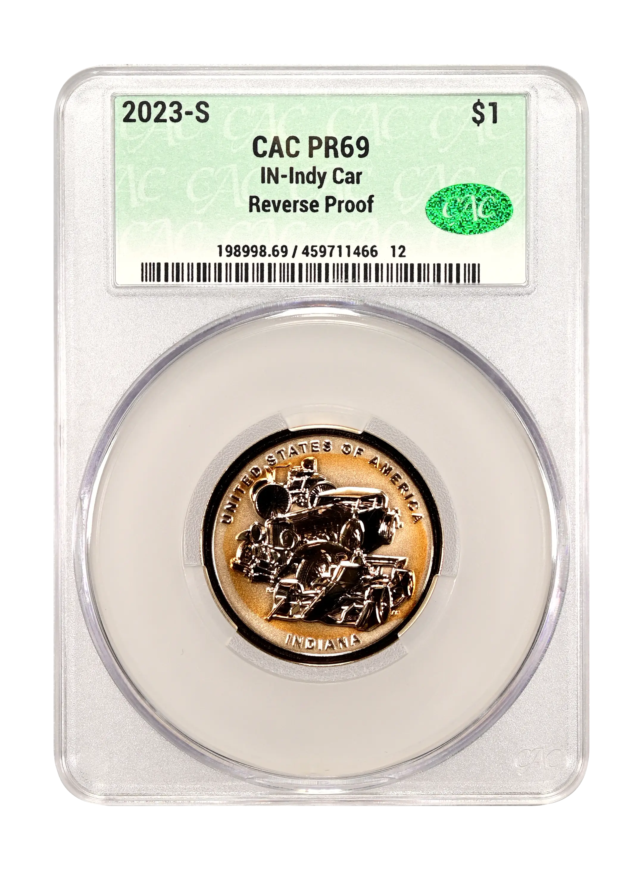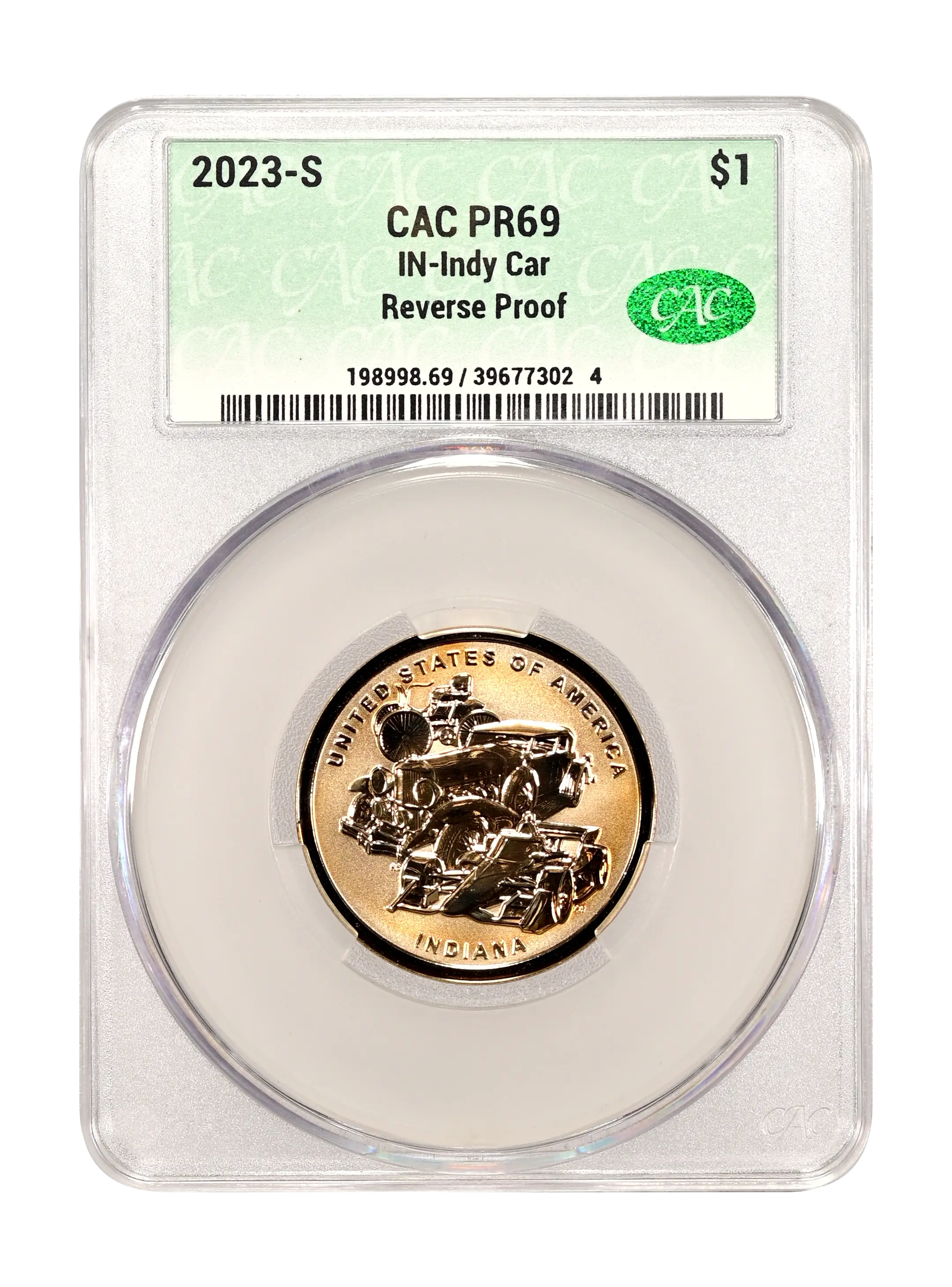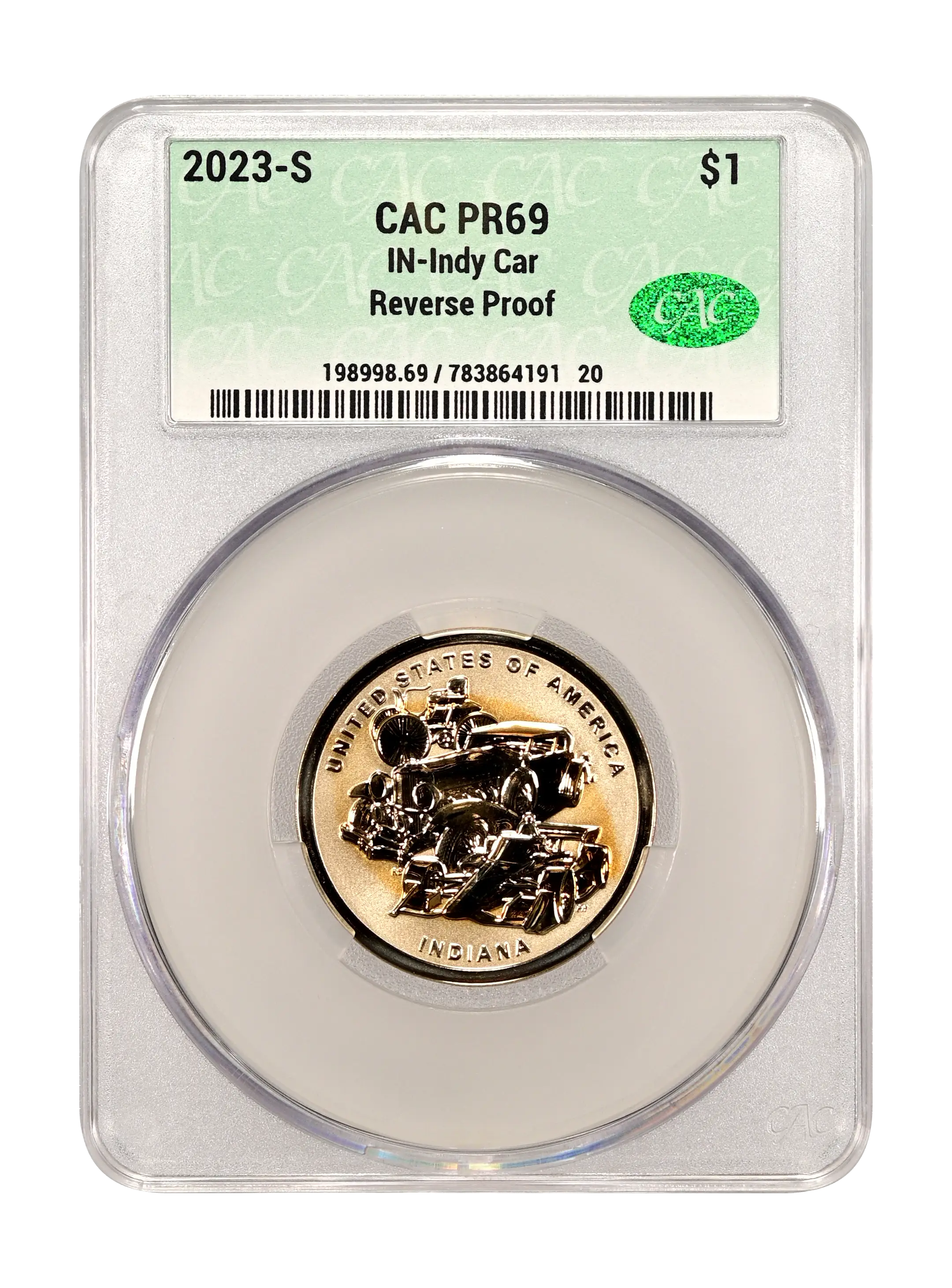 2023-S IN-Indy Car $1 Reverse Proof (Proof) CAC PR69
