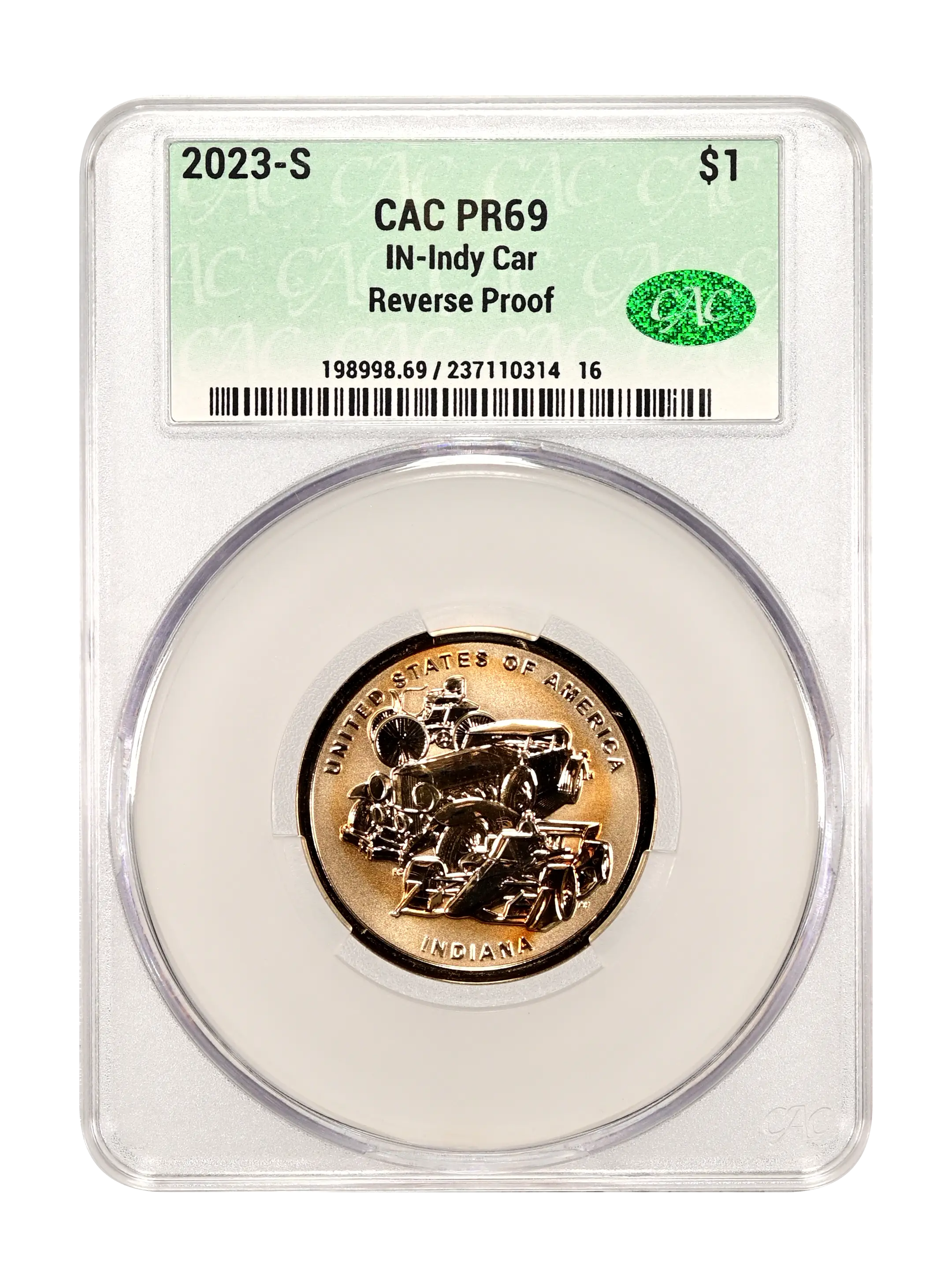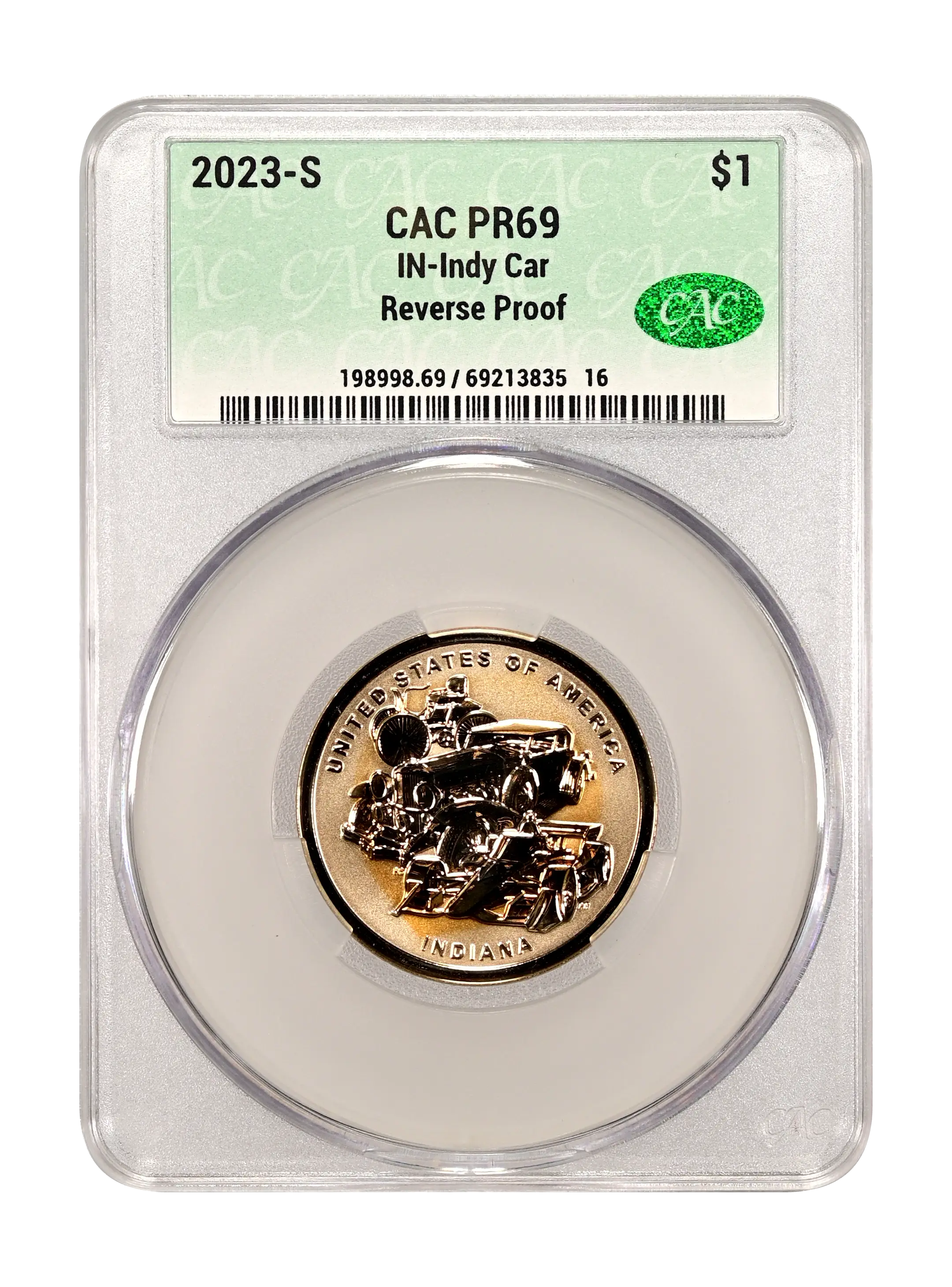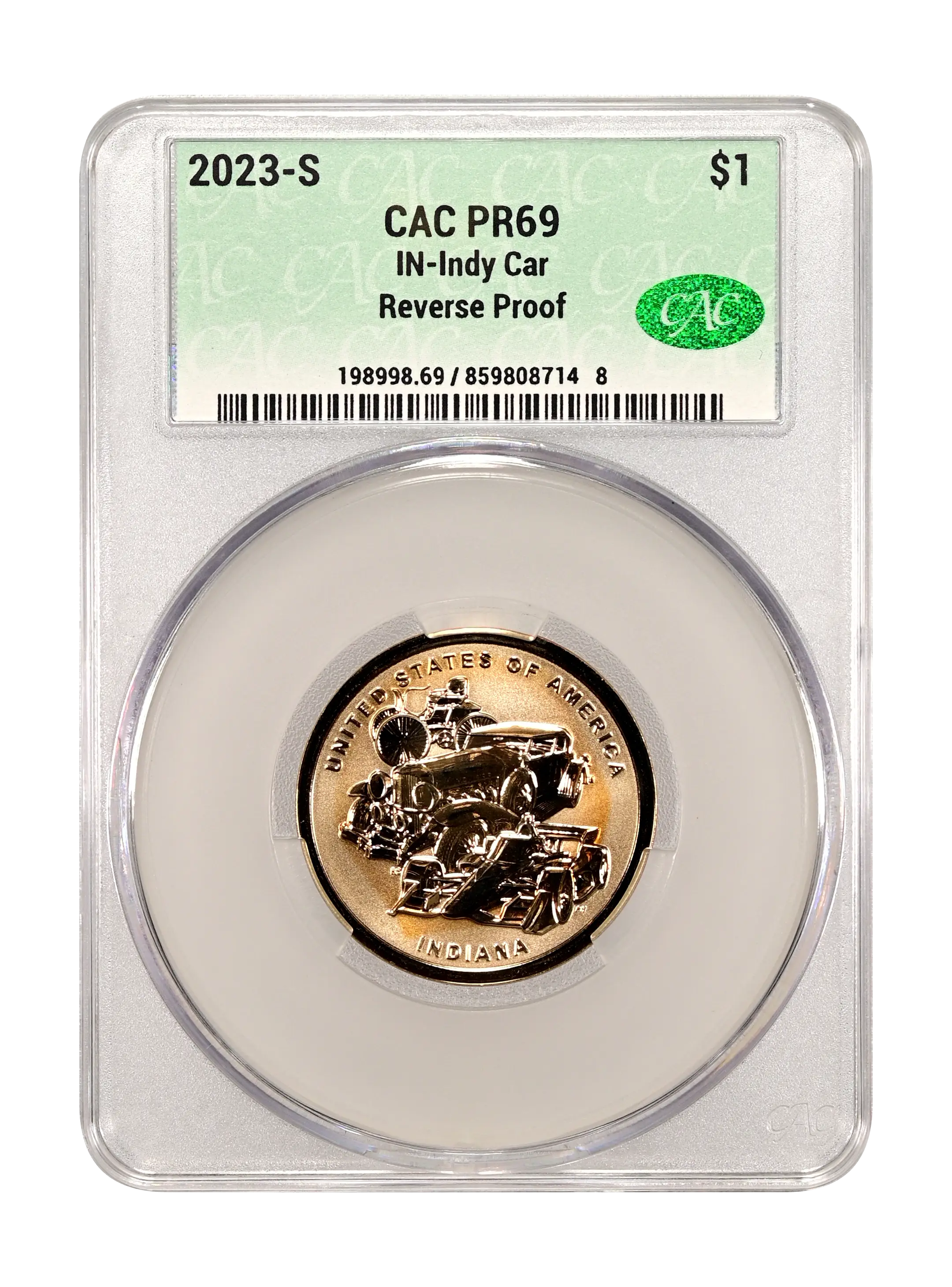 2023-S IN-Indy Car $1 Reverse Proof (Proof) CAC PR69