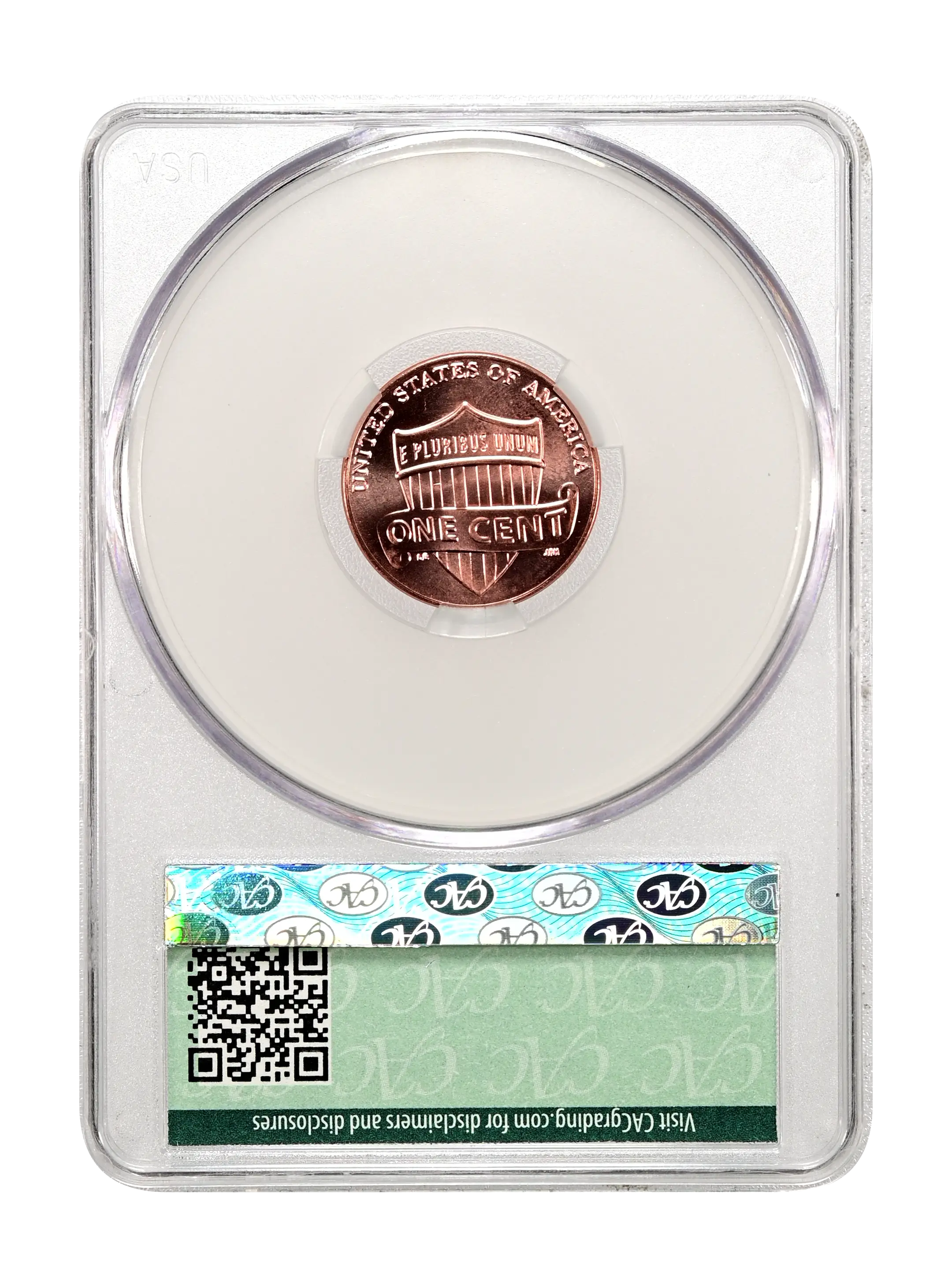 Reverse: A shield with the words E PLURIBUS UNUM is centered with the words UNITED STATES OF AMERICA on the top periphery and ONE cent in a ribbon across the shield.