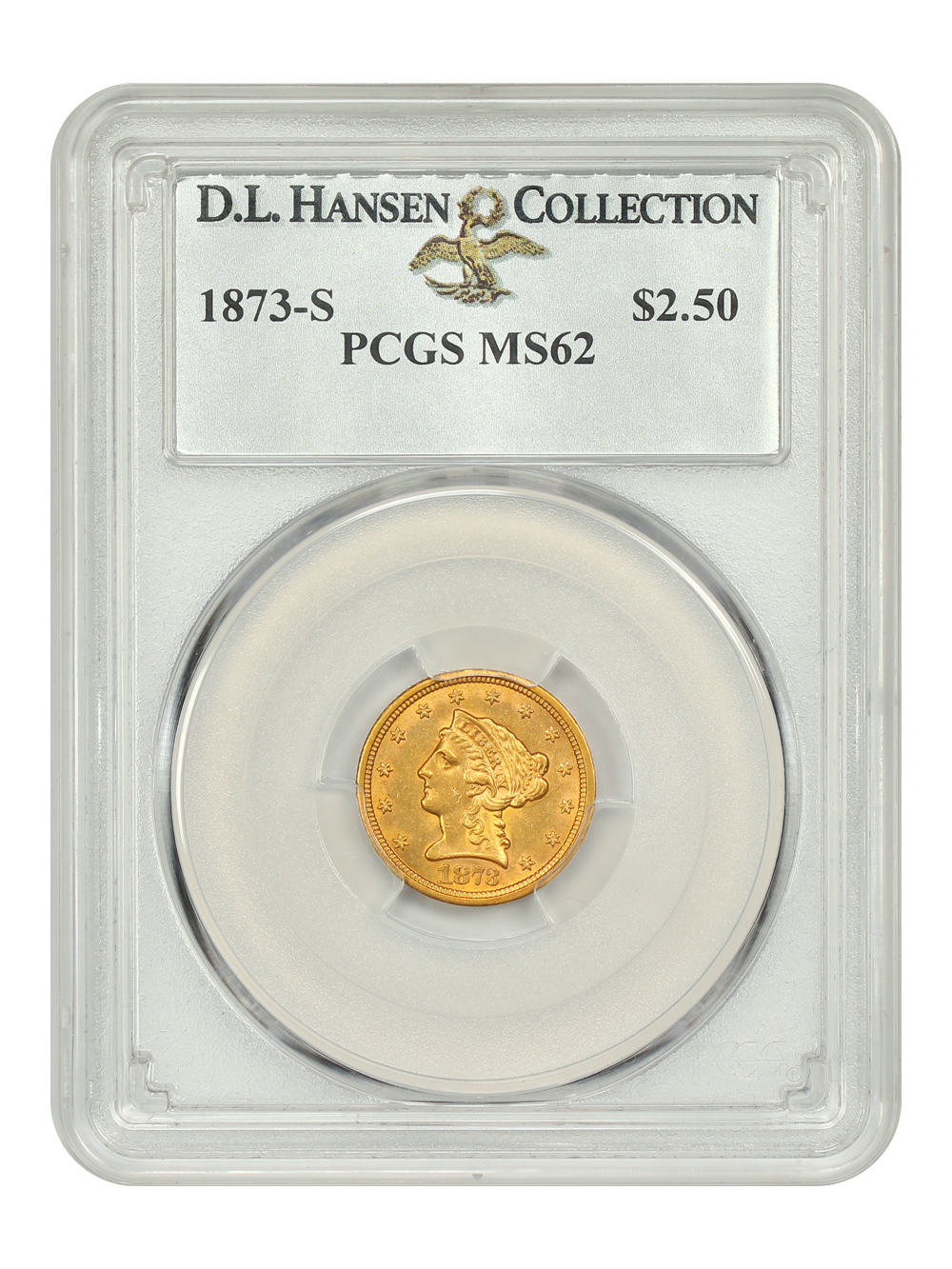 Reverse: An eagle with wings fully spread with a ribbon above its head bearing the motto E PLURIBUS UNUM. The words UNITED STATES OF AMERICA around the periphery with "2 1/2 D." written as a fraction appears at the bottom.