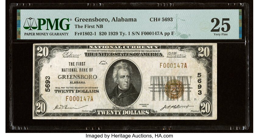 1929 Type 1 $20 PMG VF25 (Fr. 1802-1)