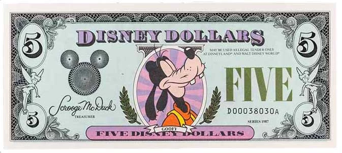 Disney Five Dollars Currency & Banknote Values