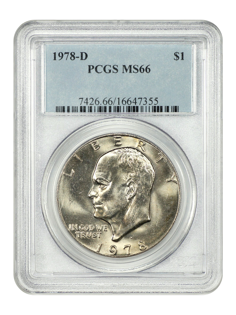 While hundreds of millions of Eisenhower dollars were made, copper-nickel clad business-strike specimens grading MS65 or better are remarkably scarce. This is because the coins are relatively large and heavy and thus more prone to surface gouges and other imperfections during shipment in bags.