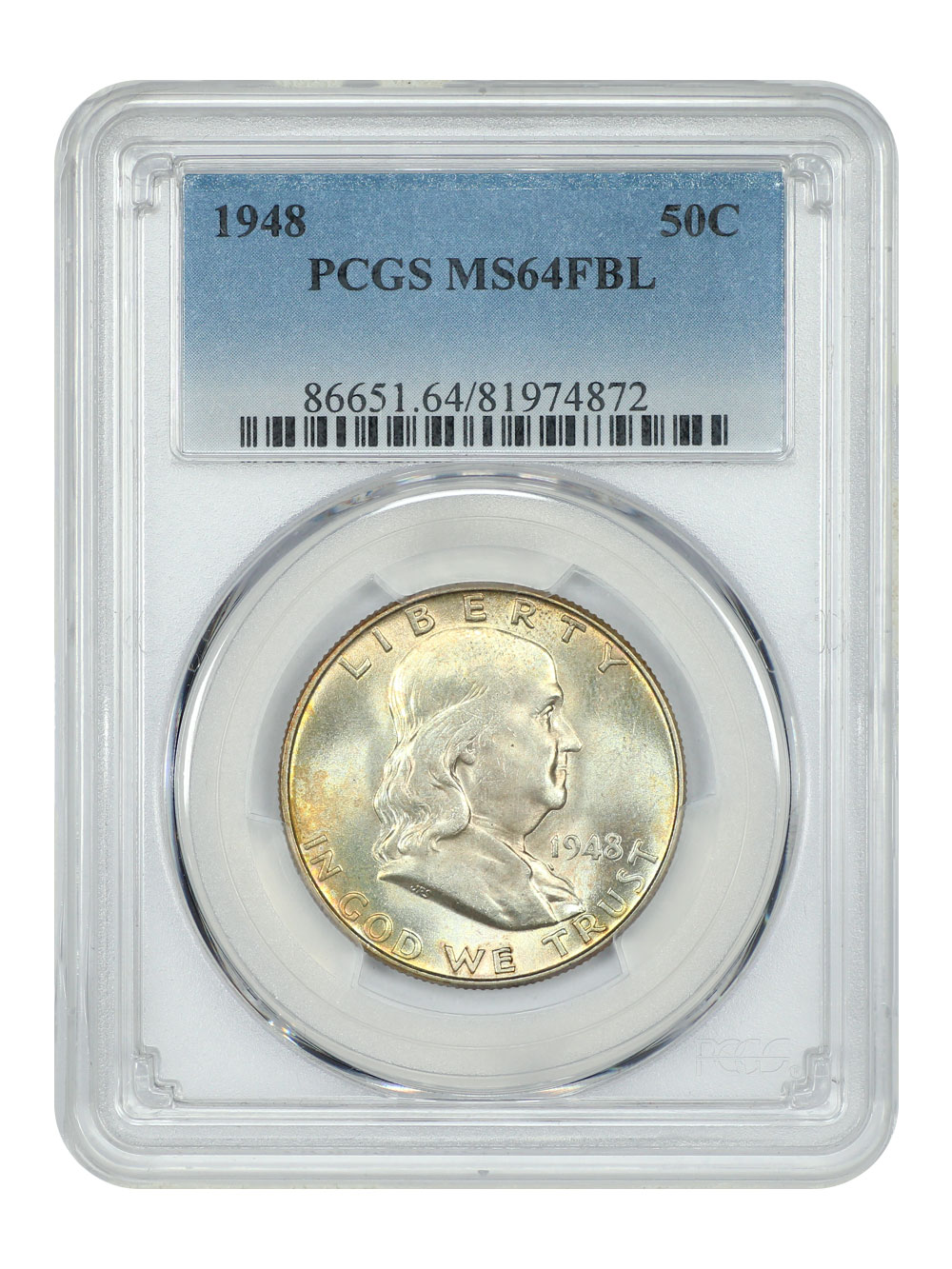 Starting in 2023, we have created separate pricing categories for Franklin half dollars that are toned (colored surfaces) vs. pure white surfaces. Unless a coin has spectacular toning, there is usually a significant premium for coins that are pure white, due to collector preference.