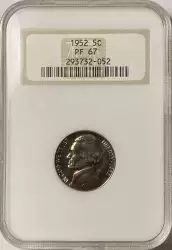 Most proof Jefferson nickels are common and readily available, though specimens struck from 1938 through the mid 1950s are more considerably scarcer and subsequently more valuable. All proof Jefferson nickels made before the mid 1970s exhibiting full cameo devices are relatively more scarce and valuable than lesser-quality pieces. Virtually all proof Jefferson nickels minted since the late 1970s range in grade from PR67 to PR70 and exhibit crisp deep cameo devices.