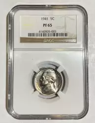 One of the most valuable Jefferson nickel varieties is the 1971 No-S proof, which trades for around $1,000 in nice mid-range proof grades, with better examples snagging higher values. Also notable is the production of the 1942 Type I and 1942-P Type II proofs. 1942 Type I proofs are made from the traditional copper-nickel composition while the 1942-P Type II consists of the World War II-era 35% silver makeup and also is the first proof coin from the Philadelphia Mint bearing a "P" mintmark.