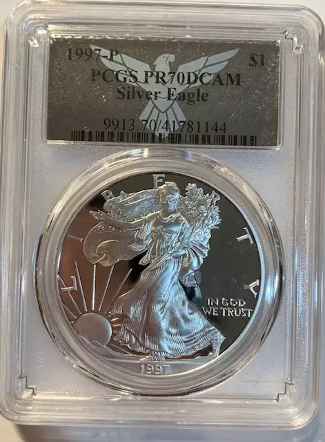 While many proof American Silver Eagles are hot items in numismatic and bullion circles, the most coveted issue of all is the 1995-W American Silver Eagle. It has a very small mintage of 30,125 pieces and was included as a free bonus item in 1995-W four-piece gold American Eagle proof sets honoring the 10th anniversary of the nation?s bullion coin program. The 1995-W silver eagle now sells for four-figure prices, and for a time PR70 specimens commanded prices of nearly $20,000. As more top-grade specimens have been encapsulated by the major third-party coin certification services, prices for the 1995-W in PR70 have subsequently come down. However, the 1995-W American Silver Eagle is still a wildly popular rarity and, along with other proof silver eagles, is most often sought in PR69 and PR70 grades.