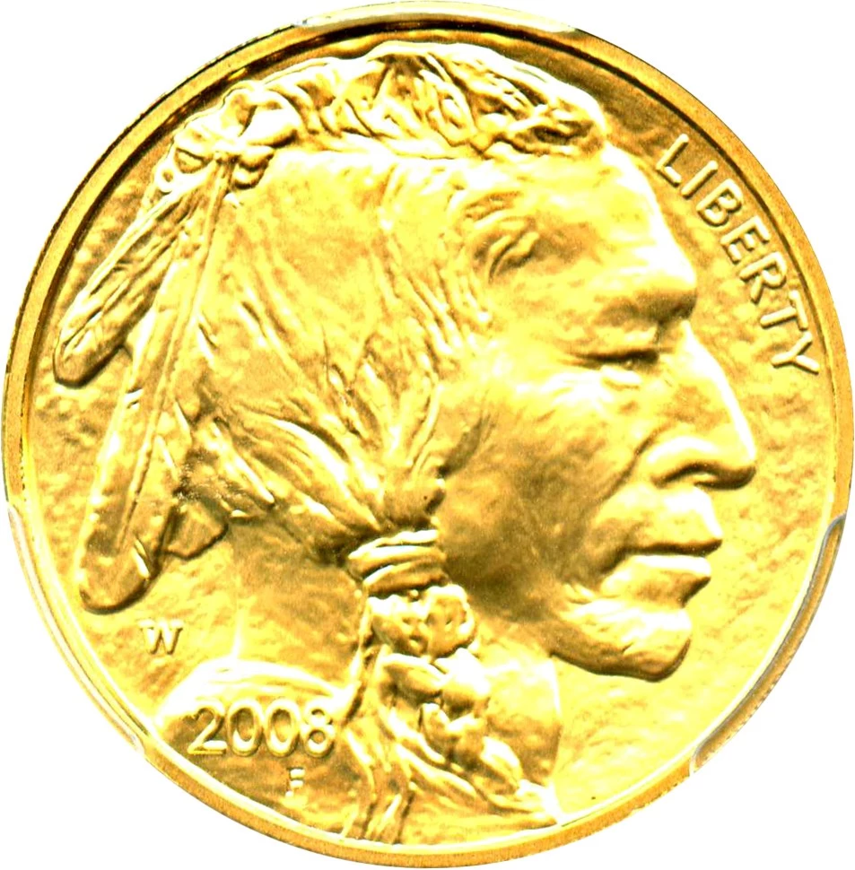 These attractive gold bullion coins carry the timeless Indian Head and ?Buffalo? designs that James Earle Fraser designated for the nickel in 1913. The Buffalo nickel, which carries a likeness of an American bison, was produced until 1938 and became a beloved coin in both numismatic circles and in the general American public alike. 2008-W $25 Buffalo gold coins were made in relatively small quantities but remain plentiful given their levels of active demand. The West Point Mint struck 16,908 burnished specimens and 12,169 proofs.