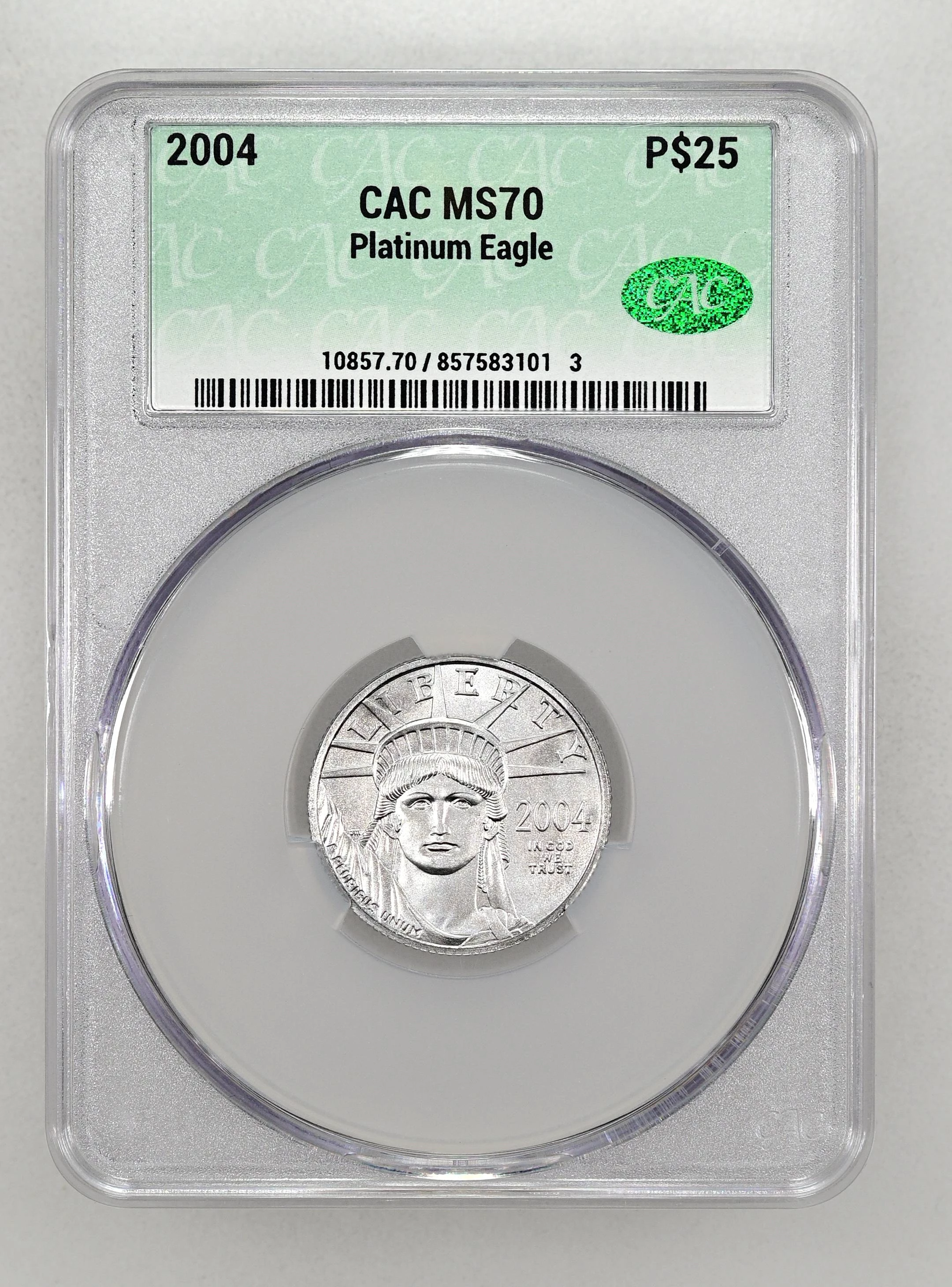 The Greysheet Catalog (GSID) of the $25 Platinum Eagles (1997–2008) series of American Eagles in the U.S. Coins contains 16 distinct entries with CPG® values between $470.75 and $3,750.00.
